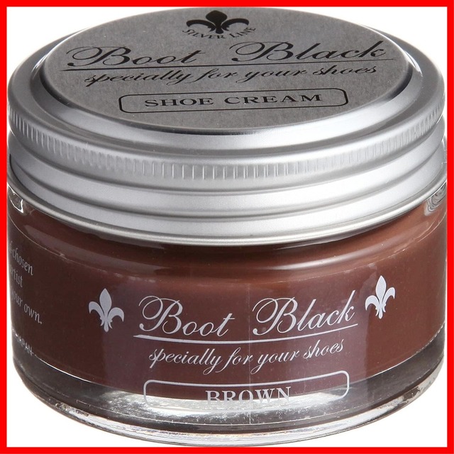 【商品名】 [Columbus] 革靴メンテ 高光沢でリッチモイスト 41色 ブートブラックシルバーライン シュークリーム 【サイズ】 色: ブラウン 【商品説明】 容量:55g 成分:ミツロウ、ライスワックス、モンタン系ワックス、パラフィン系ワックス、ホワイトオイル、有機溶剤 種類:乳化性 レザーローションで汚れを落とし、シュークリームを布で薄く伸ばしながら塗って下さい。 ブラッシングで良く馴染ませ、乾いたら柔らかな布で磨いて下さい。 靴磨きの<プロ>が創り上げた靴クリーム。クリームの伸び、拭き取りの軽さ(布の走り)などの使いやすさと、皮革への優しさを追求した基礎シューケア用品です。90年以上の歴史が育んだワックスブレンド技術を活かした処方による光沢、保革はもちろん、磨き感に優れたシュークリームです。微結晶で特有の粘りのあるミツロウと、硬く高光沢の鉱物系ワックスが皮革表面に密着した滑らかなツヤを与えます。また、皮革内部にゆっくりと浸透するミネラルオイルを配合しましたので、優れた保革効果を与えます。55g入り