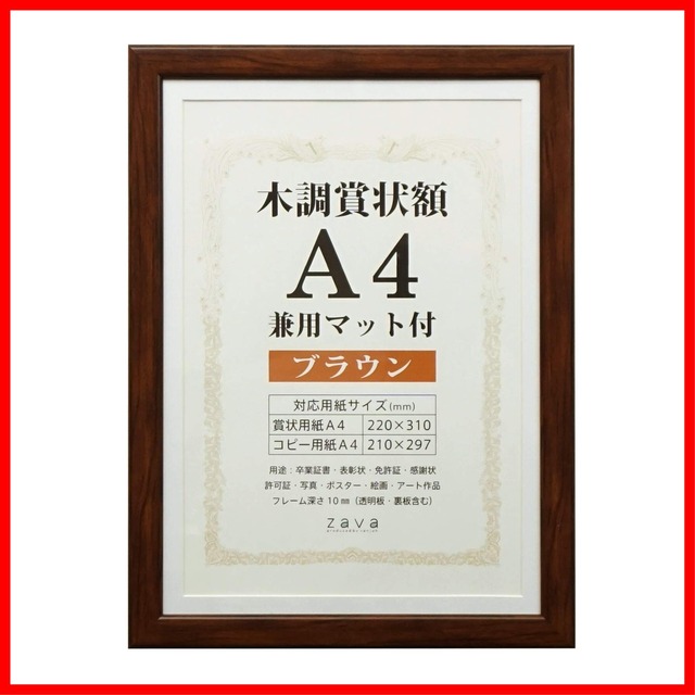 万丈 VANJOH 木調賞状額 A4 兼用マット付き ブラウン 105871 WSJ-A4-BR
