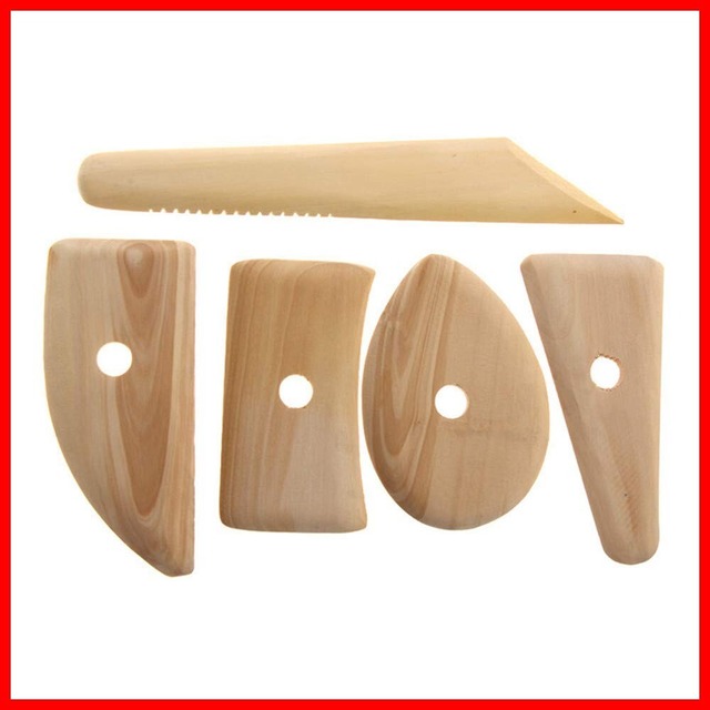 Kingsie 陶芸用品 こて 5個セット 木ごて 粘土ヘラ 陶芸 粘土道具 モデリングツール