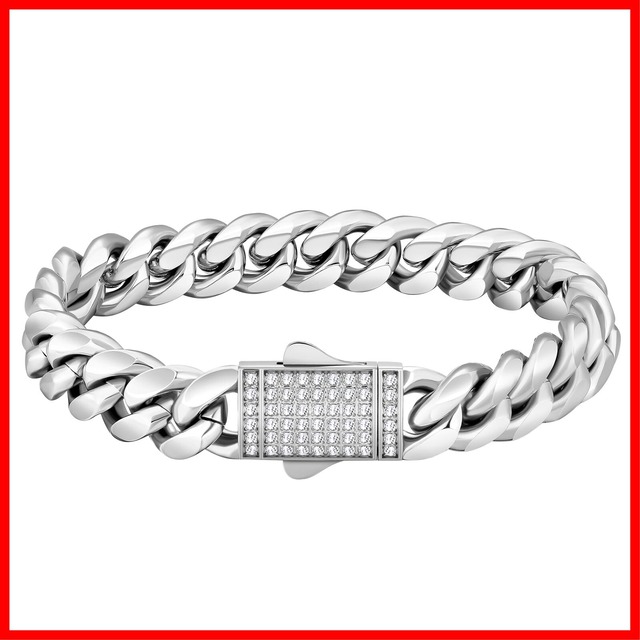 KRKC&CO 喜平ブレスレット メンズブレス 12mm ステンレス マイアミ キューバンチェーン 18金メッキ キヘイ 男性 腕輪 ジルコニア 金属アレルギー対応 ラッパー ダンサー B系 ヒップホップ アクセサリー