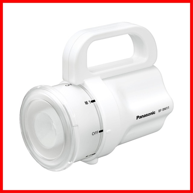 【商品名】 パナソニック 防滴構造 LED懐中電灯 電池がどれでもライト ホワイト BF-BM11M-W 【商品説明】 単1形~単4形の電池がどれでも1本で使える 小雨の中でも使える防滴構造(IPX1相当) 大型ファネルシェード採用でランタンとしても使用可能 最長で約42時間20分連続使用可能 停電時に懐中電灯・ランタンとしても活躍。 ・単1形~単4形の電池がどれでも1本で使える(充電池使用可能) ・小雨の中でも使える防滴構造(IPX1相当) ・大型ファネルシェード採用でランタンとしても使用可能 ・最長で約42時間20分連続使用可能※1 ・照度:懐中電灯使用時:約500 lx(1m前方電池初期値(乾電池EVOLTA NEO単1形使用時)/ランタン使用時:約3 lx(50cm側方電池初期値(乾電池EVOLTA NEO単1形使用時) ・光束:約50 lm(参考値) 本体サイズ:約幅135×奥行80×高さ125mm 本体質量:約240g(乾電池エボルタ単3形1本含む) ※1: 乾電池エボルタNEOを単1形~単4形まで全サイズ使用時の合計時間。連続使用時は、各サイズのスイッチの切り替え操作が必要です。