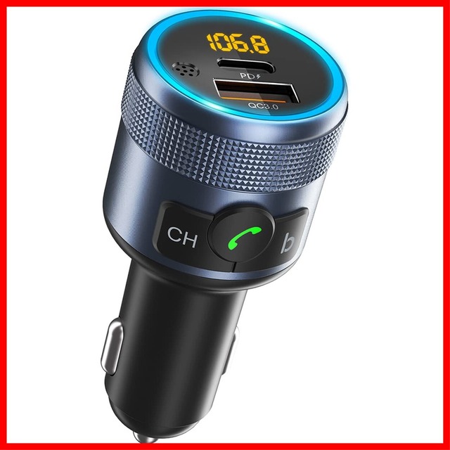 【商品名】 【Bluetooth5.1新登場】 FMトランスミッター HUNDRUP QC3.0急速充電 PD20W対応 USB *1口/Type-C *1口 車載 重低音モード Siri&Google Assistant対応 LEDライト ハンズフリー通話 12~24V車対応 電圧測定 周波数76-108Mhz 日本語取扱説明書 【商品説明】 【業界最先端のBluetooth5.1チップ】HUNDRUP FM トランスミッターは最新ワイヤレス規格 "Bluetooth5.1" を採用し、走行中でも音が途切れない安定接続を実現しました! さらに、FM電波がかぶって音が上手く出せないストレスから開放すべく、周波数を76~108MHzの幅広い321chフルバンドに対応しています。 【対応端末】各種iPhone、Androidのすべてのスマホ・タブレットに対応。 【 QC3.0&PD20W急速充電丨最大38W】 このFMトランスミッターはQuick Charge 3.0急速充電ポートとPowerdelivery 20W出力のType-Cポートを搭載し、従来の充電器と比較して約4倍の速さで充電が可能です。音楽を再生しながら、スマホやタブレットを "最大38W" の急速充電かつ "最大2台" まで同時充電が可能。バッテリー切れを気にすることなく使えます。【電圧測定】バッテリー電圧検出機能付きなので、車の異変を察知するのにも役立ちます。 【重低音ブースト機能】C81トランスミッターは重低音ブースト機能が搭載されているので、ワンプッシュだけで深みのある低音再生とオープンイヤーリスニング体験で運転を盛り上げましょう。【CVC騒音低減技術】コンパクトなつくりながらノイズキャンセリング機能を搭載しており、クリアな音質で快適に音楽を楽しめます。このFMトランスミッターのLEDムードライトは、音楽のリズムに連動して色が変化します。 【 "操作性"は抜群】金属回転ノブの設計で、周波数や音量調整などはノブを回すだけで操作できます。【スマートデザイン】限界まで余計なデザインをそぎ落とすことで、わずか45g超軽量ボディーを実現。車載FMトランスミッター本体には液晶画面が搭載されており、設定した周波数がLEDで表示され、夜間の暗い車内でも周波数の確認が容易におこなえます。 【ハンズフリー機能】運転中の通話に便利なハンズフリー機能も搭載しています。ひとつの多機能ボタンで、応答・着信拒否・終話などの操作ができるため、ハンズフリー通話を楽しみながら運転に集中できます。【Siri&Google アシスタント対応】ハンズフリー通話に加え、SiriとGoogleアシスタントに対応しているのも特徴。電話をかけたり、地図アプリを開いたりといった操作が音声で簡単に行えます。電波法認証取得 (番号204-B00450) / "微弱無線" 検査合格。 ブランド §H∞HUNDRUP 接続技術 Bluetooth 電源 コード付き電気,バッテリー駆動 商品の寸法 33長さ x 33幅 x 85高さ mm 色 ブラック