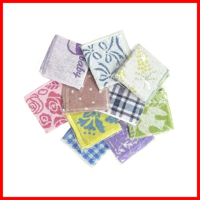 Little Budding レディース タオル ハンカチ 10枚組 ギフト ラッピング 色柄 おまかせ (23x23cm~25x25㎝)