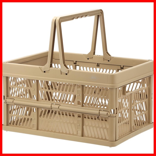 不二貿易 折りたたみ コンテナ かご 幅45×奥行31.5×高さ25㎝ ベージュ 取っ手付き 持ち運び簡単 内容量26L Lサイズ 86451
