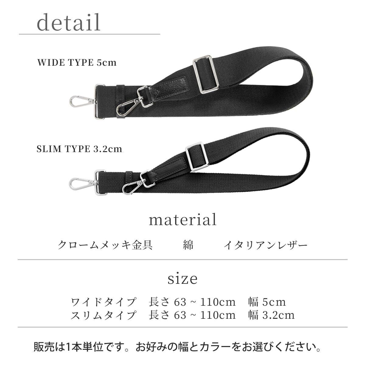[サイズ] ・長さ 63cm~110cm ・幅 Slimタイプ:3.2cm Wideタイプ:5cm ・重さ Wideタイプ:160g ※ストラップ1本単位での販売です [素材] コットン・イタリアンレザー