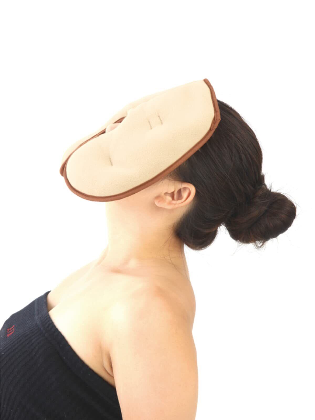 材質:ベージュ面:ナイロン 93.4%、ポリウレタン 6.6%、グレー面:ポリエステル 91.4%、ポリウレタン 8.6%、フチ布:ポリエステル 65.2%、コットン 34.8%、ビーズ:セラミック