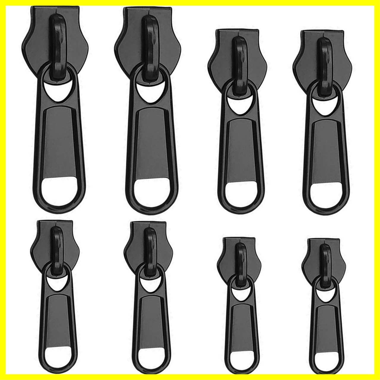 ファスナー 引き手 ファスナー ジッパータブ 補修用交換部品 4サイズ8個セット(ブラック (ブラック)
