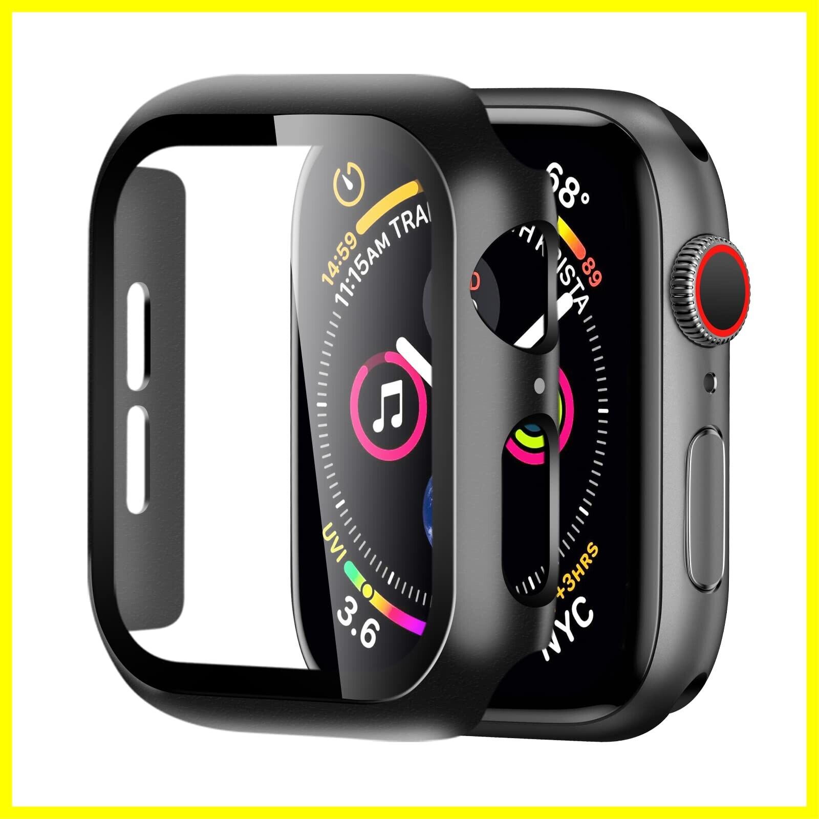 【2024強化モデル】BELIYO 対応 アップルウォッチ カバー 46mm 45mm 44mm 42mm 41mm 40mm 38mm 49mm Apple Watch 10 46mm ケース アップルウォッチ10 ケース 46mm 強化ガラス 日本旭硝子材 キズ防止 Apple Watch カバー PC素材 ガラスフィルム 一体型 二重構造(46mm,ブラック)
