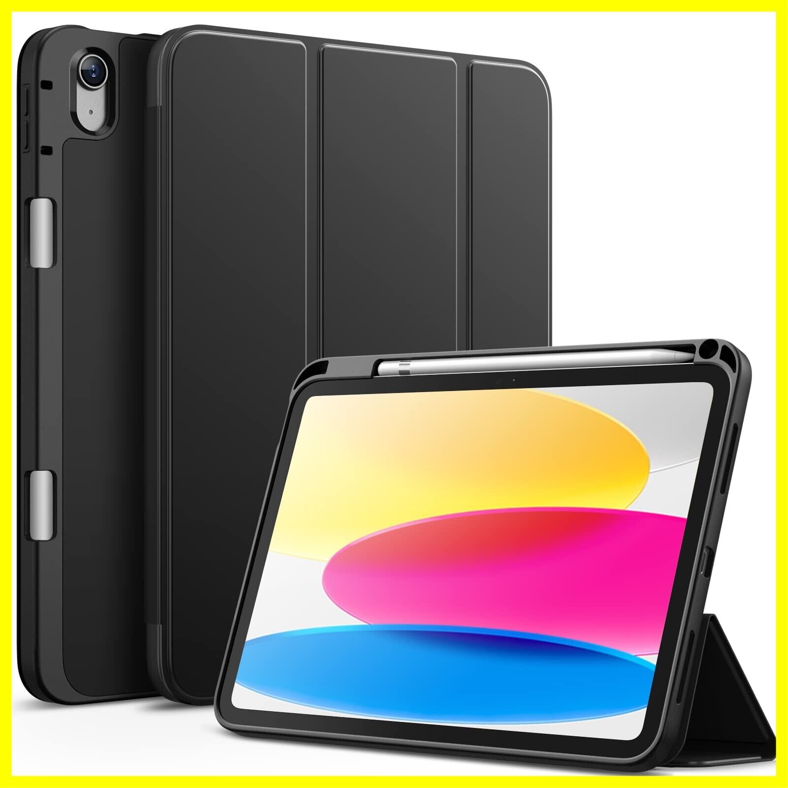 JEDirect iPad 10 ケース(10.9インチ、2022モデル、第10世代用) Pencilホルダー付き 対応 ソフトTPUバック スリム保護カバー オートウェイクアップ/スリープ機能付き (ブラック) | hananoki