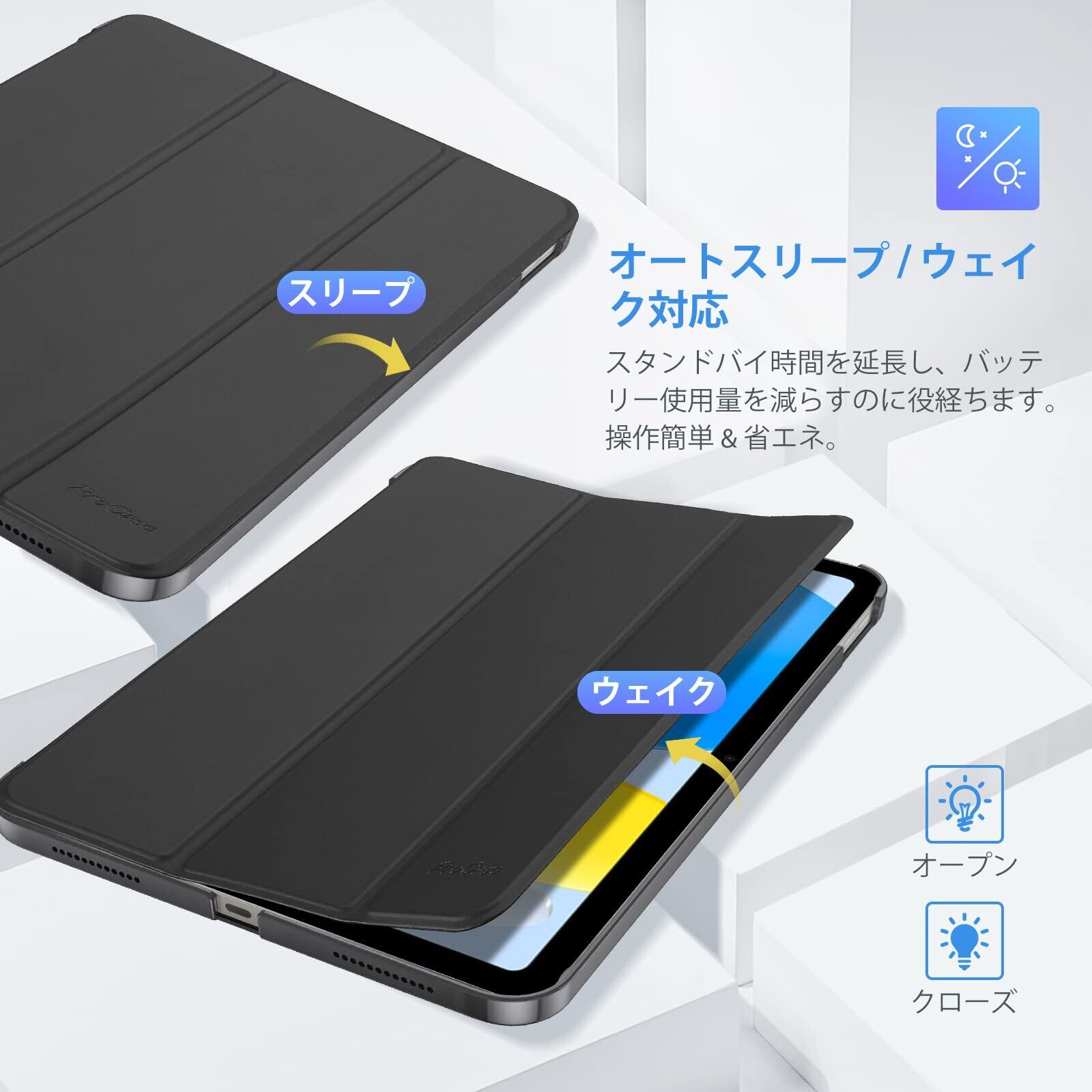 ProCase iPad 10世代 ケース 2022 10.9インチ A2696 A2757 A2777 軽量 耐衝撃 三つ折り スタンド スマートカバー(シャドウブラック)