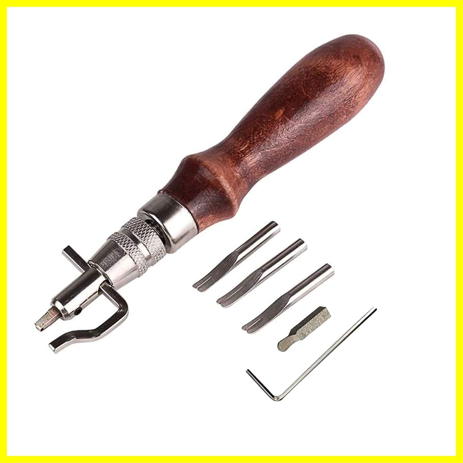 【多機能レザークラフト】レザークラフトライフのこだわりの道具、多機能ステッチンググルーバー。ステッチンググルーバー、エッジクリーサー、ベベルレザーエッジ、ラフエッジトリマー、ステッチングホールスペーサーとして機能します