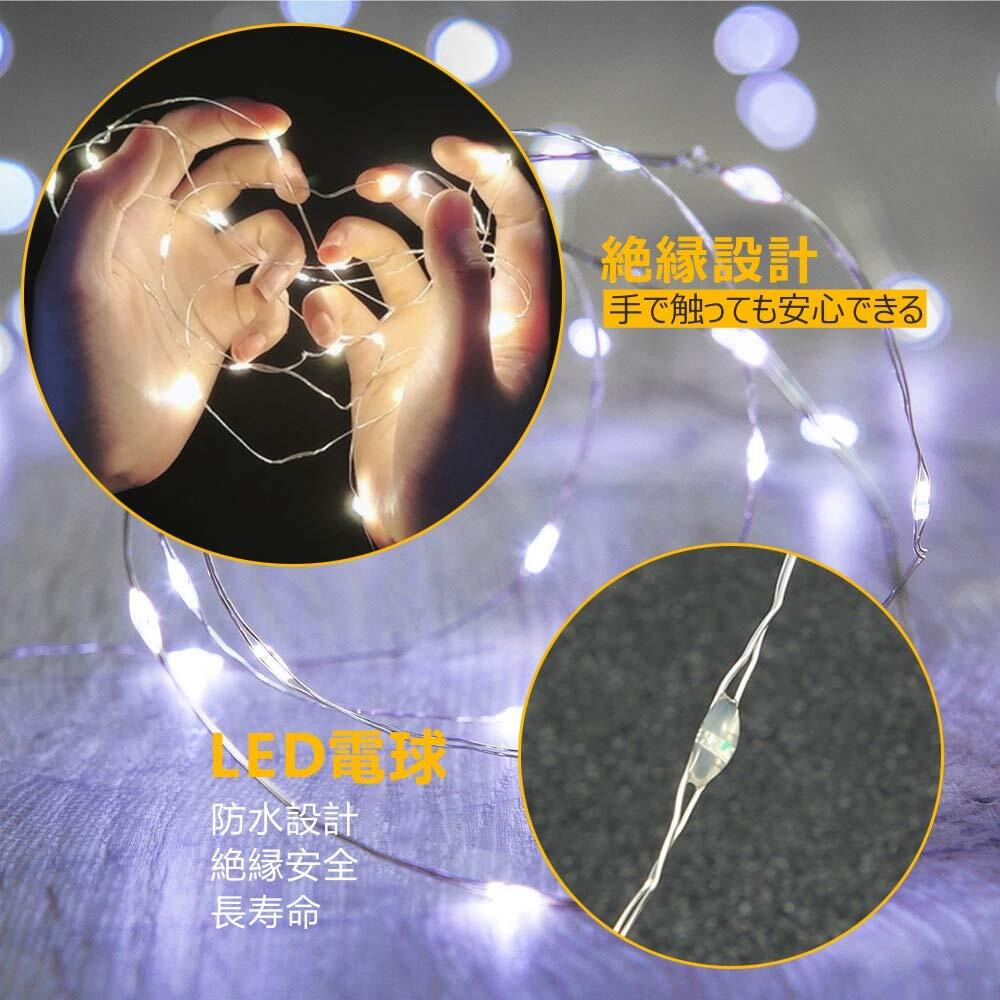 ✩【耐久性&柔軟性】ケーブル本体は高品質で絶縁的な純銅線で作られ、わずか約4.5Vの低圧なので感電やショットの心配はありません。銅線の部分は曲がったり折ったりしても変形と崩壊はしません。好きな形を手軽に作り出来ます。庭園の植物、クリスマスツリー、工芸品、家具などの装飾に最適です。ジュエリーライトは、星空のような照明効果を提供してくれ、雰囲気も暖かくになります。しかも、使用した後の収納にもとても便利です。