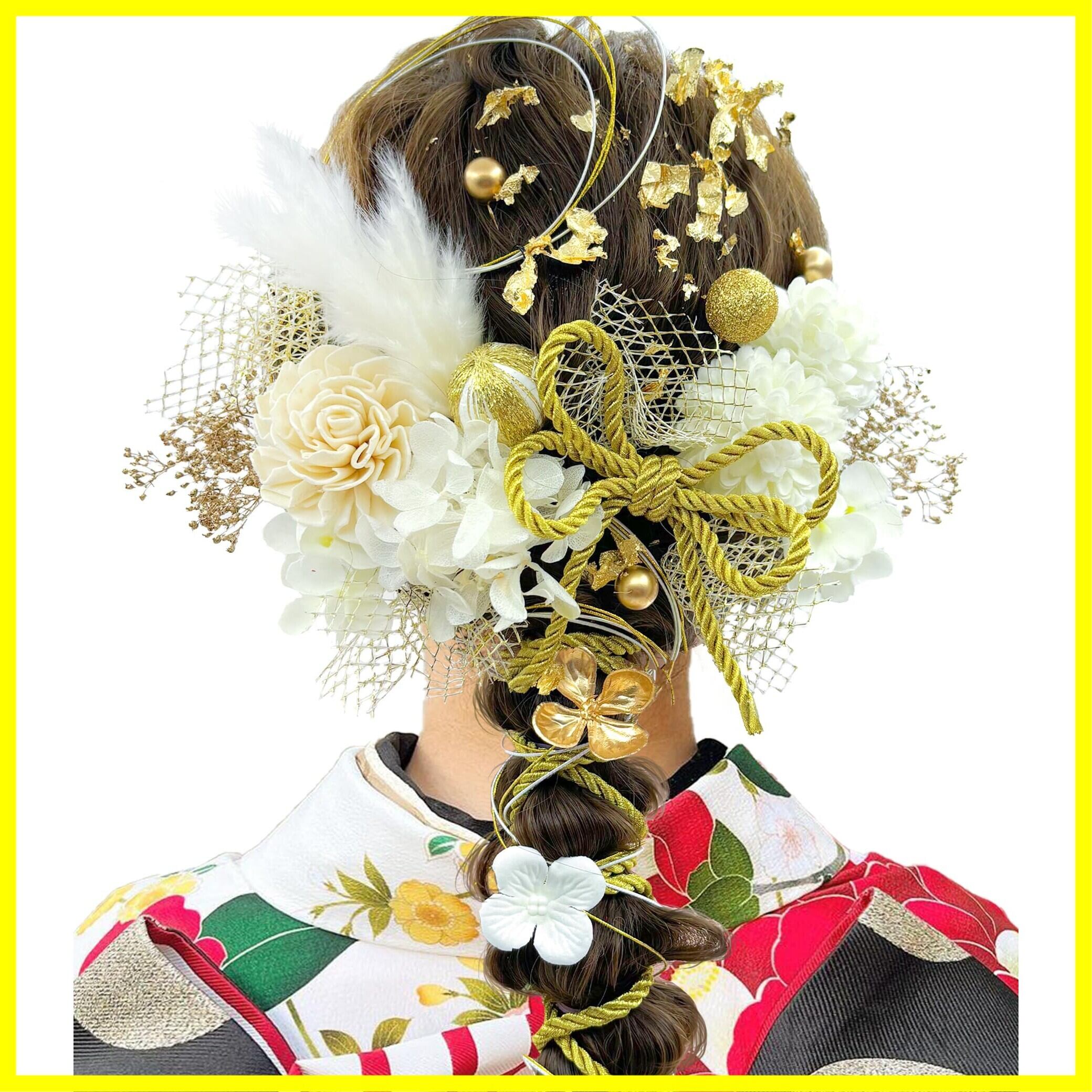 [JZOON] 髪飾り 10色 ドライフラワー 造花飾り 水引 紐 ヘアーアクセサリー 和玉 かすみ草 金箔 人気 和服 着物 振袖 袴 花 浴衣 成人式 七五三 結納 卒業式 入学式 結婚式 発表会 TC001 | hananoki