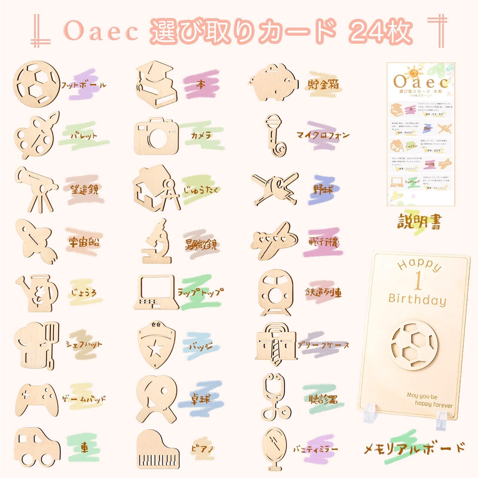 Oaec 選び取りカード 1歳 木製 24枚セット 誕生日 木製カード 赤ちゃん 出産祝い 百日祝い 誕生日祝い 記念日フォト 男の子 女の子 取扱説明書 メモリアルボード付き