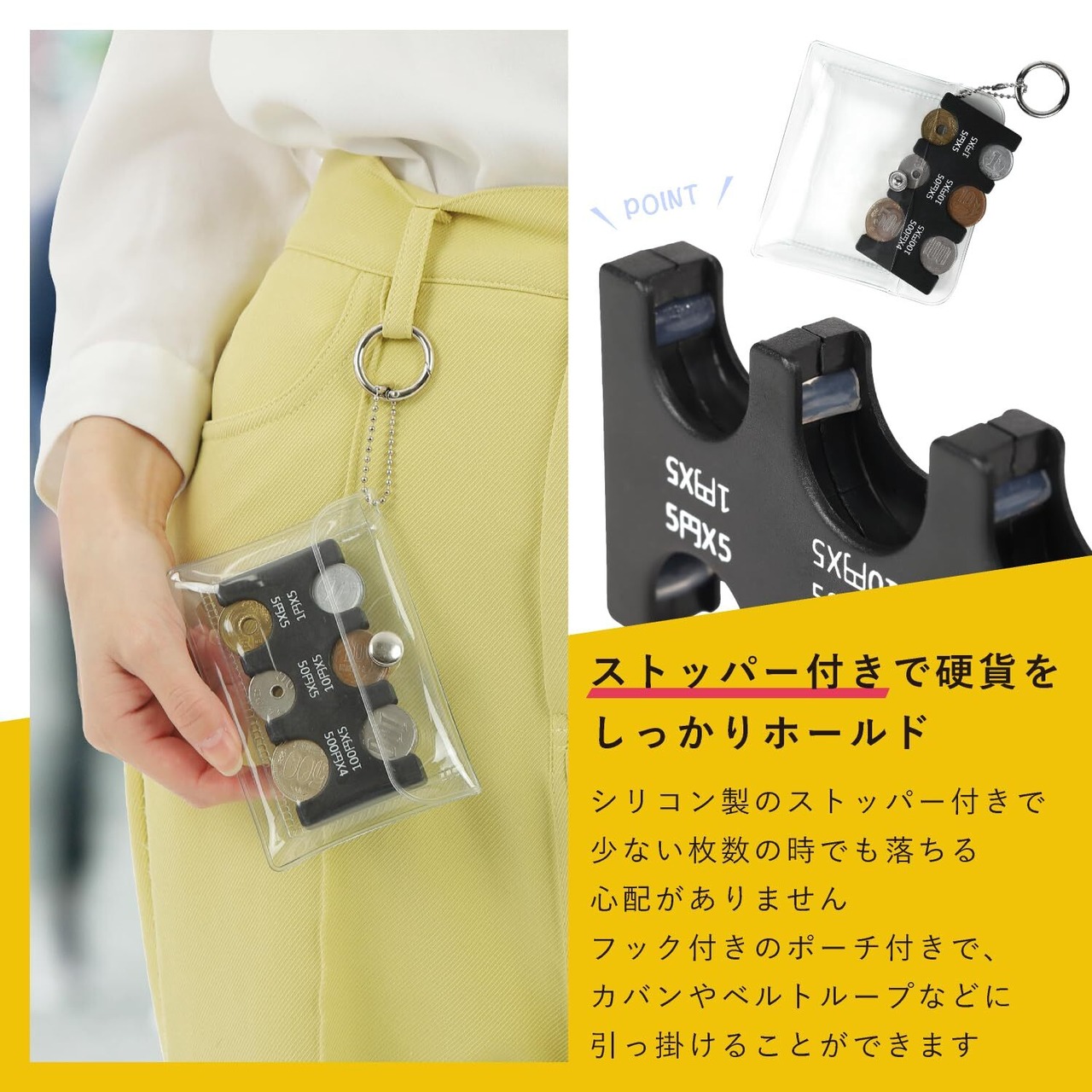 【片手で取り出し支払いスムーズ】スロットルの内側にはコインを固定するシリコンストッパーがついており、揺れても落ちず、使用時にも片手でスムーズに取り出せます。ポケットや鞄に入れて持ち運んでも、コインがバラバラになることもないし、しっかりホールドしてくれます。1枚の場合でもコインが落ちる心配なし。