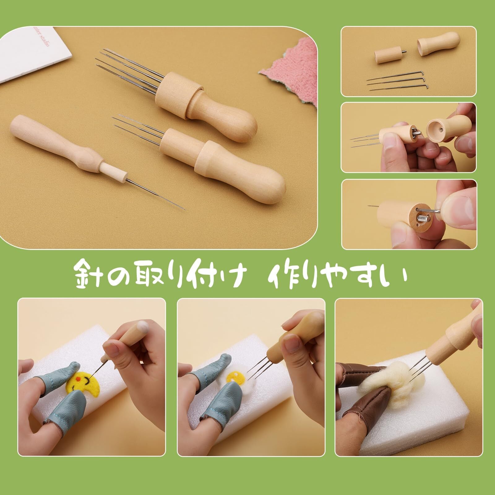 完全なフェルトツールキット: 4 つの異なるサイズの針、18 本 * 36 ゲージ、30 本 * 38 ゲージ、42 本 * 40 ゲージ、8 本 * 42 ゲージのフェルト針が含まれます。 針ハンドル3個、指サック1組(色はランダム)、クリーニングクロス1個、針ボトル4個、さまざまなニーズを満たすことができます。