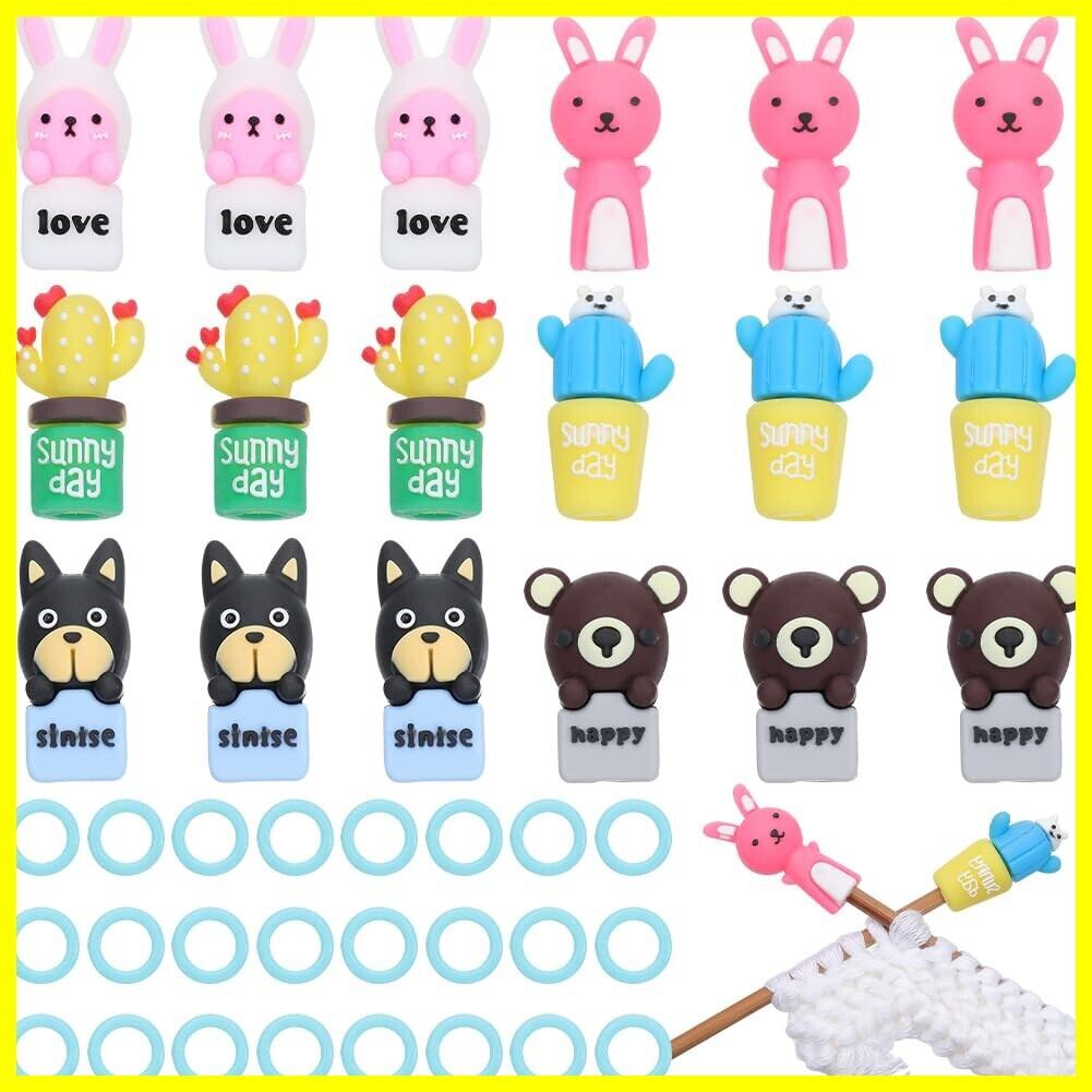 1ボックス78個編みツールキット: パッケージには18個の針ストッパーと60個のシリコンリングが含まれます。キュートで興味深いデザインと、毎日の使用ニーズを満たすのに十分な量を備えています。 周りの人たちと共有することもできます.
