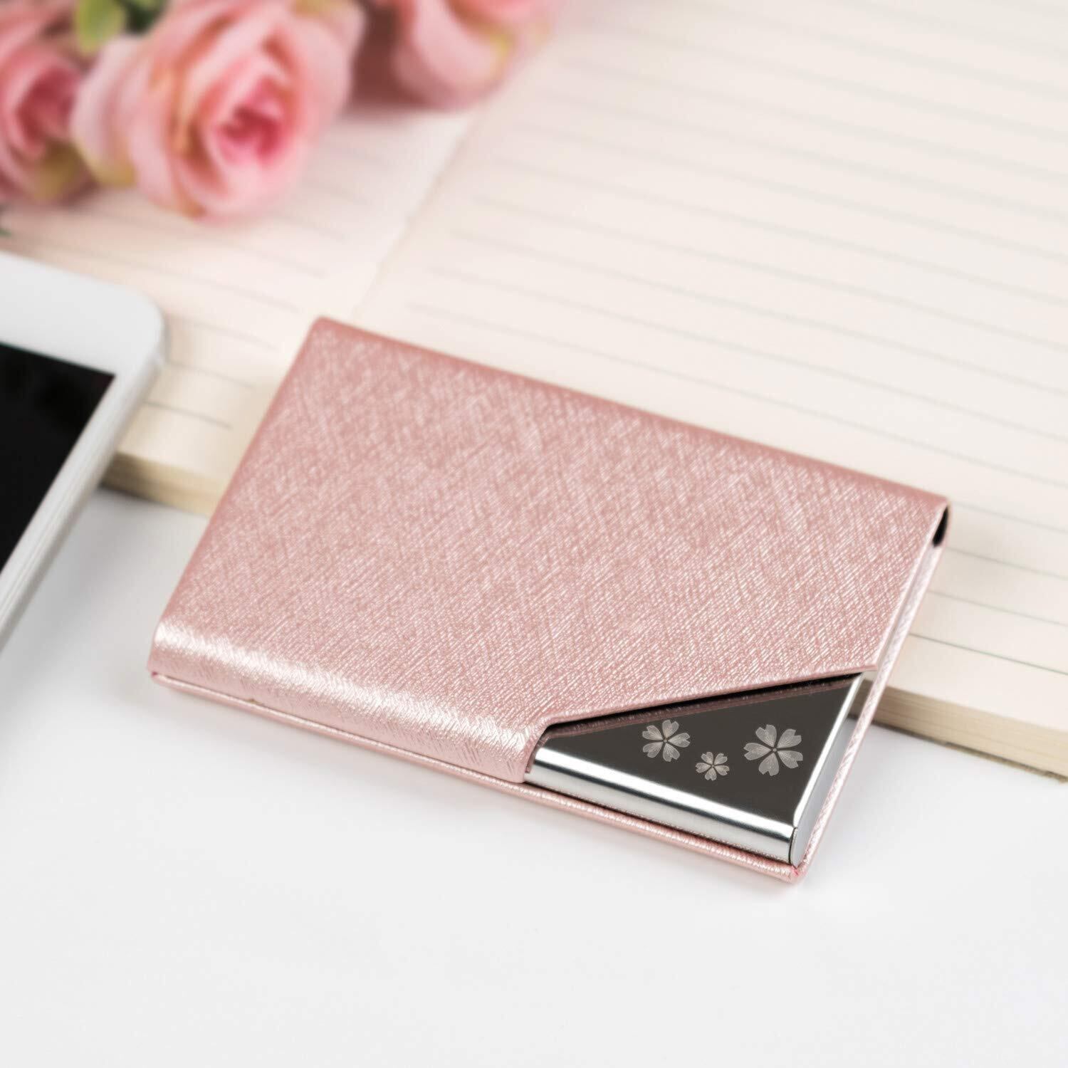 [Fukuhana] 名刺入れ メンズ レディース 合皮 薄型 選べる多色 名刺が折れない 専用の化粧箱が付き (桜さくら色)