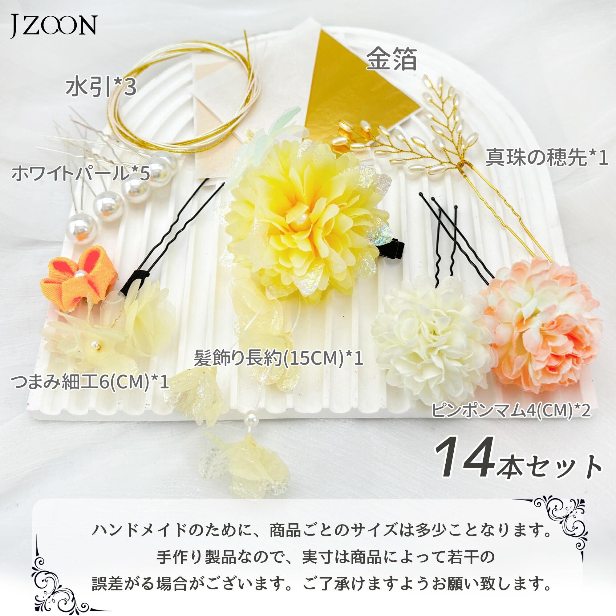 [JZOON] 髪飾り 14点セット 高級造花 ひまわり カスミソウ 水引 お花 紐 ドライフラワー 成人式 七五三 浴衣 袴 着物 振袖 和装 卒業式 結婚式 手作り 全4選 B2001