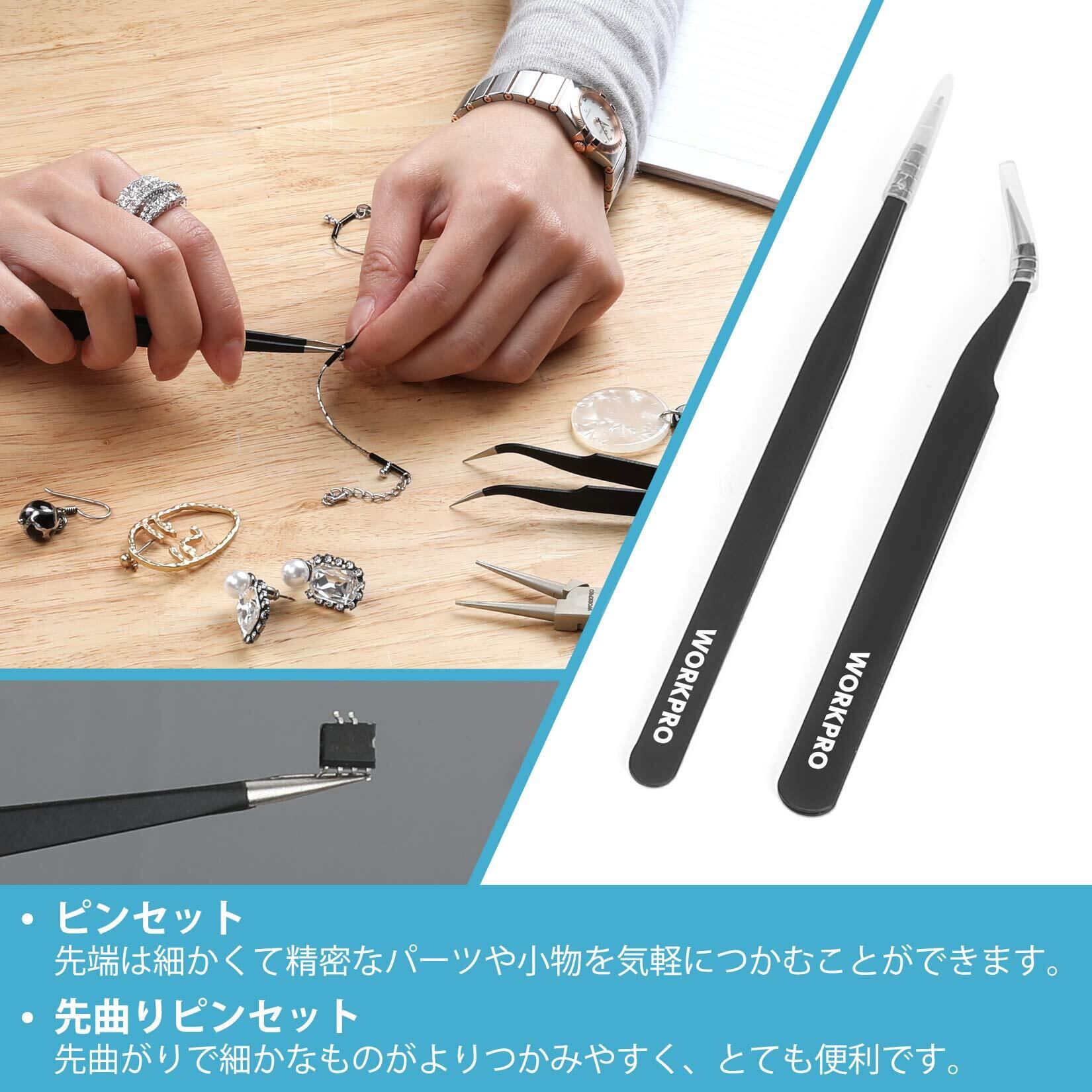 WORKPRO アクセサリー工具セット ペンチ 平やっとこ ニッパー 丸ペンチ ピンセット 手芸用 5本組 収納ケース付
