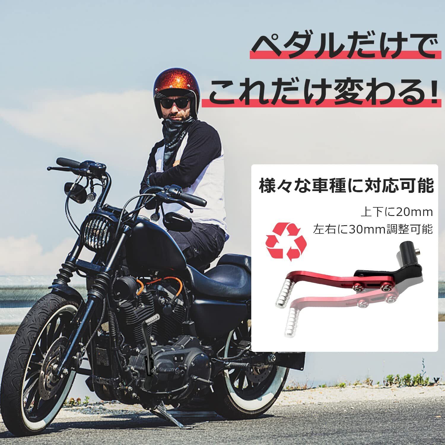 ziyue バイク シフトペダル チェンジペダル 汎用 オートバイ 改造 アルミ製 角度 高さ 調節可能 (ブラック・レッド)