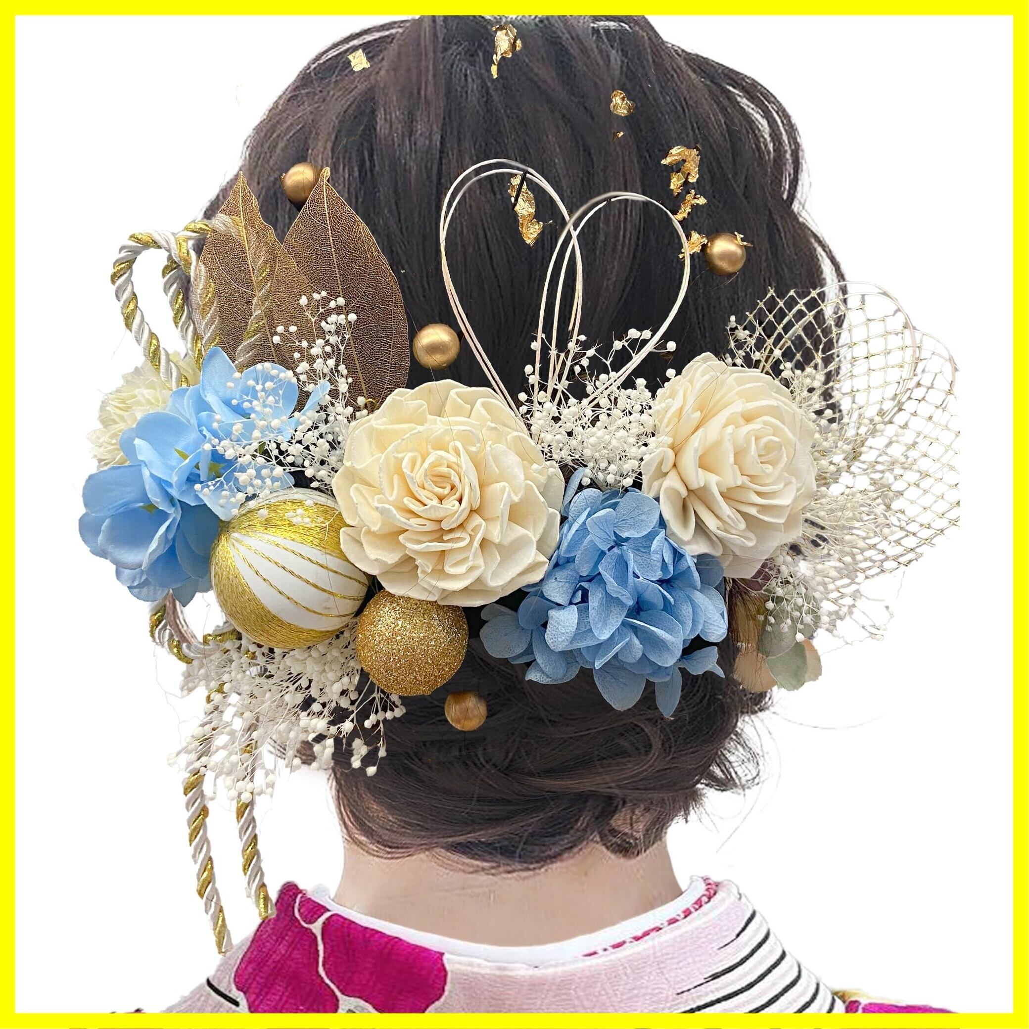 [JZOON] 成人式 髪飾り ヘアアクセサリー ダリア 紫陽花 かすみ草 ゴルードリーフ ピンポンマム アンティークベリー 網型飾り 水引き 和玉 金箔 組紐 結婚式 ウェディング 卒業式 発表会 入学式 卒園式 前撮り 和装 振袖 浴衣お23点セット | hananoki