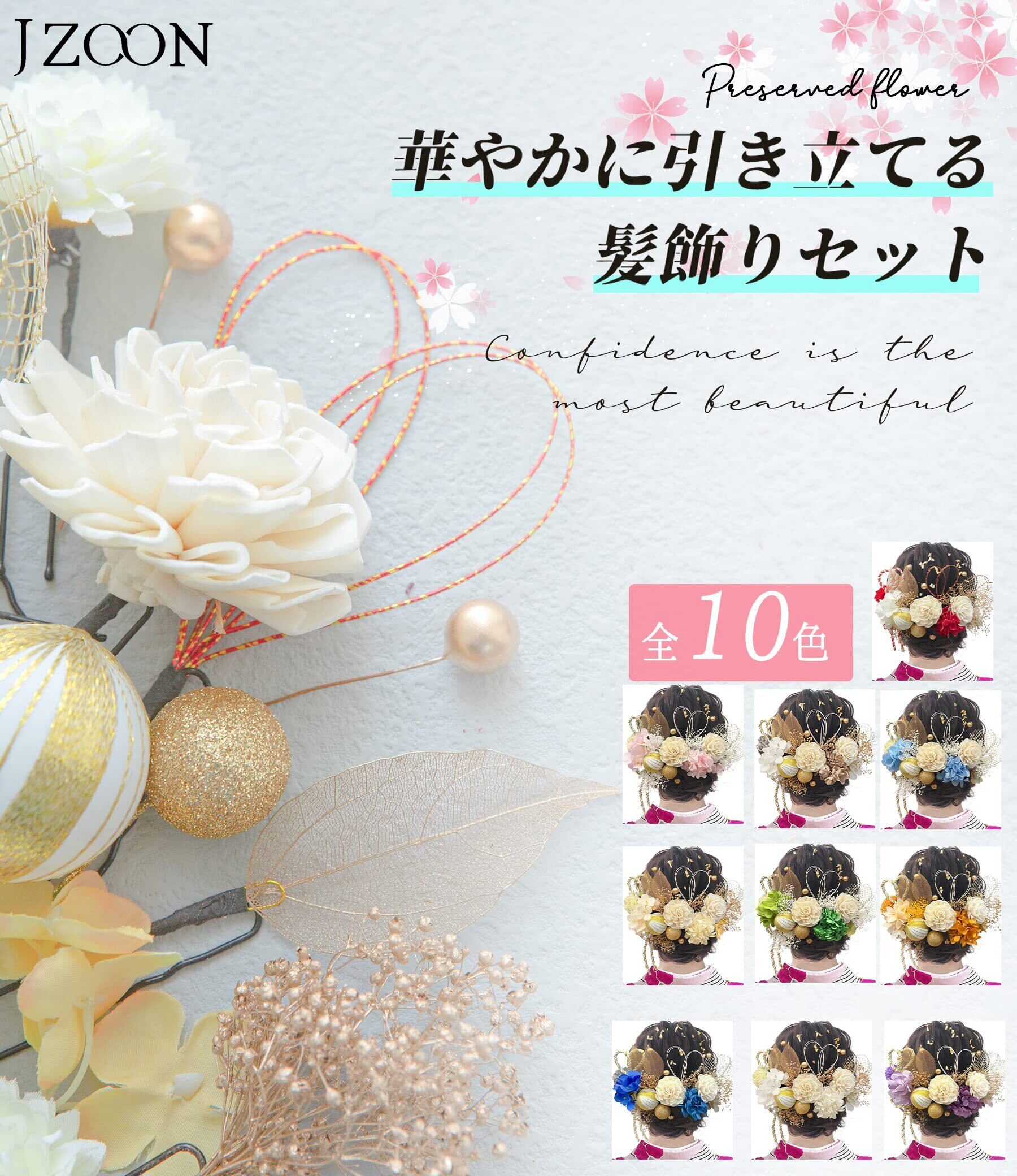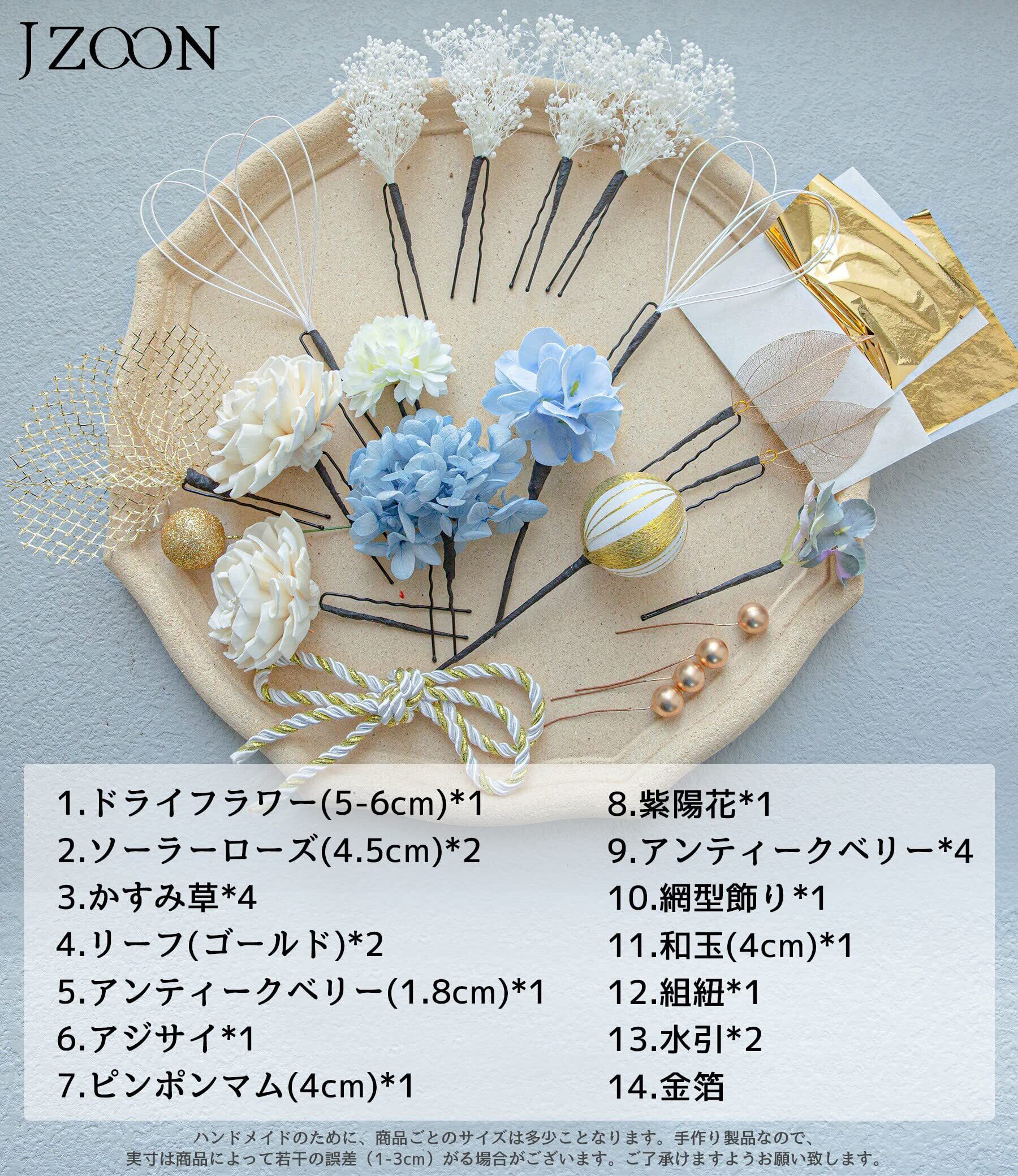 [JZOON] 成人式 髪飾り ヘアアクセサリー ダリア 紫陽花 かすみ草 ゴルードリーフ ピンポンマム アンティークベリー 網型飾り 水引き 和玉 金箔 組紐 結婚式 ウェディング 卒業式 発表会 入学式 卒園式 前撮り 和装 振袖 浴衣お23点セット