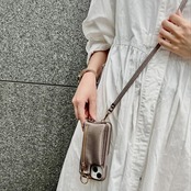 カードやリップなどが入る便利なポーチ付き!。ポーチはスタンドとしても使用可能。ショルダーストラップは長さ調整が可能。