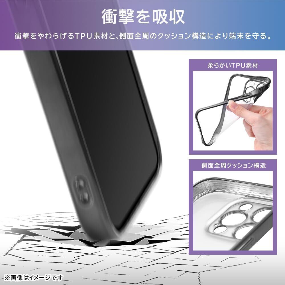 カメラやスピーカー周りまで精密に設計、背面・側面をしっかり保護 / アクセントにメッキ加工が施され高級感を演出 / 衝撃に強いTPU素材を採用、しなやかでケースの着脱もかんたん / 背面に虹色の干渉痕を抑えるマイクロドット加工を施工