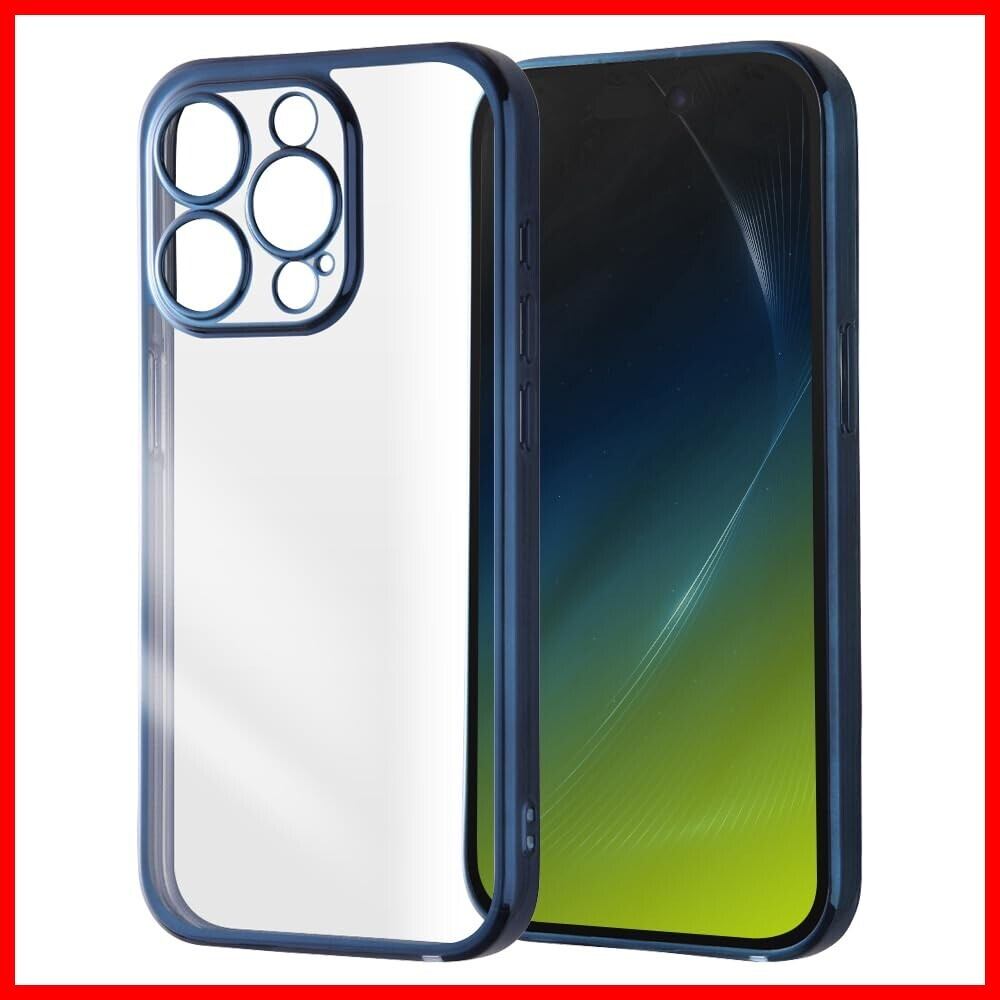 iPhone15 Pro ケース クリア 精密設計 カメラ保護 耐衝撃 メッキ加工 ストラップホール 付き アイフォン 15 プロ カバー/ブルー