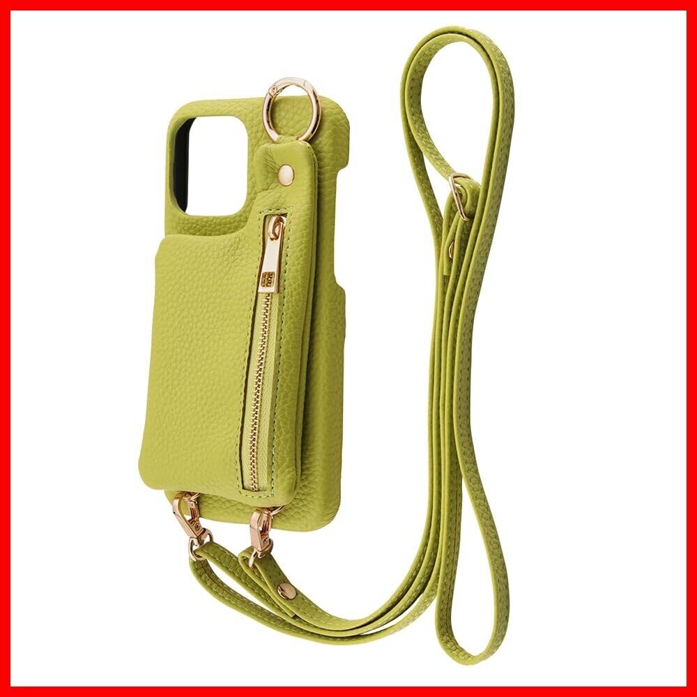 iPhone 15 Pro Max ケース オープンレザーケース ショルダーストラップ ポーチ付き m1n1 ピスタチオ