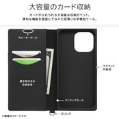 スタイリッシュなフォルムの手帳型ケース / 内側は耐衝撃性の高いスクエアのTPUケースを採用 / マグネット不使用で安心 / 傷に強く、撥水性のあるレザーを使用