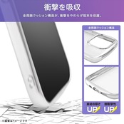 丸みを帯びた持ちやすくデザイン性のある形状で、iPhoneをしっかりと保護 / カメラレンズ周りを高くした「カメラ保護設計」 / 上部と下部にエアクッションを採用し、耐衝撃性と軽量を両立 / 便利なストラップホール