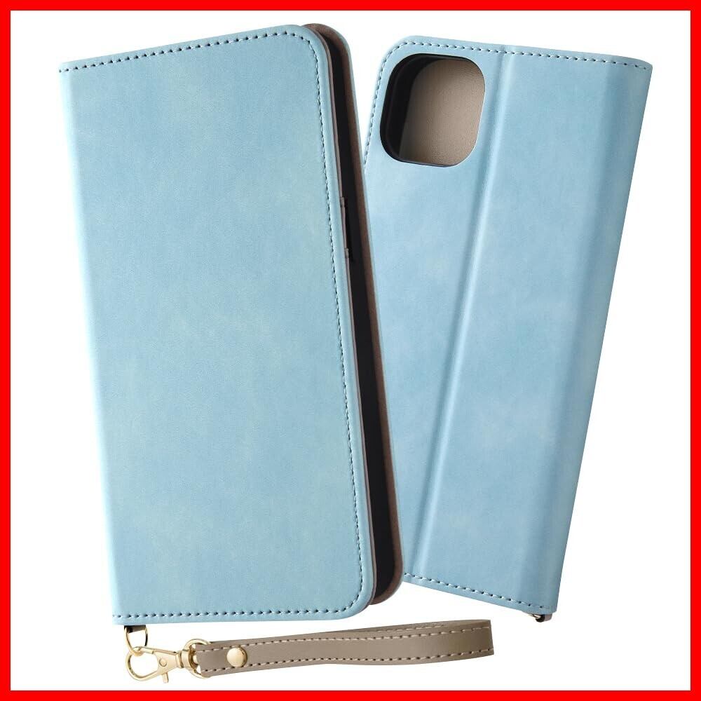 iPhone15 Plus ケース 手帳型 ハンドストラップ付き マグネット無し スタンド機能 カード3枚収納 アイフォン 15 プラス カバー/ブルー