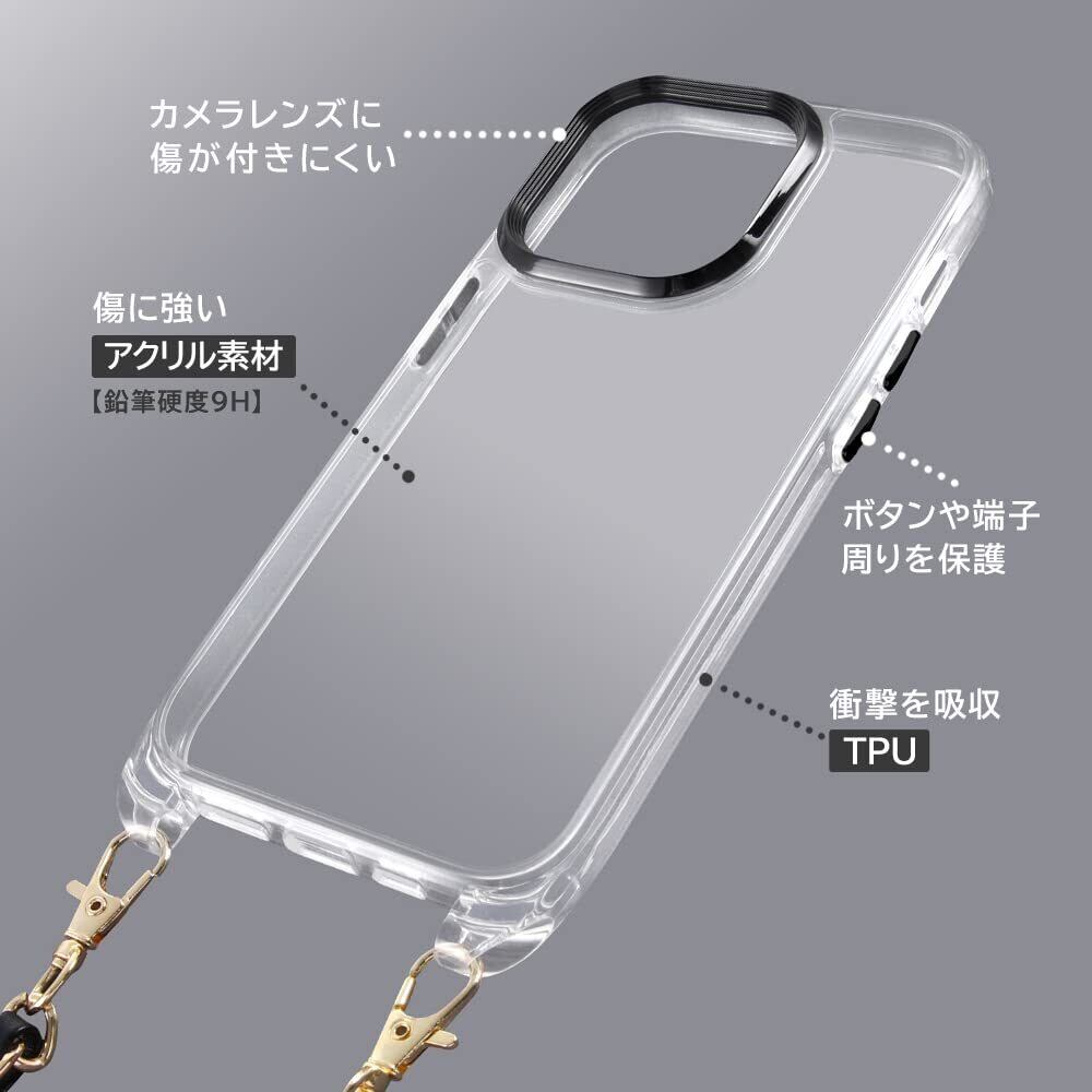 iPhone 14 Pro ケース クリア ハイブリッド ケース ショルダー ストラップ 付き スマホ ショルダー クリア ケース x ホワイト ストラップ
