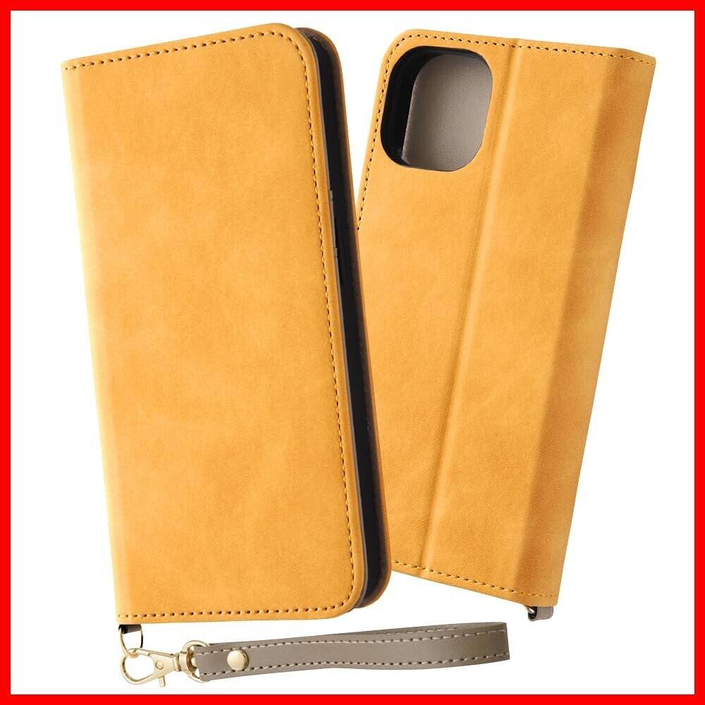 iPhone15 ケース 手帳型 ハンドストラップ付き マグネット無し スタンド機能 カード3枚収納 アイフォン 15 カバー/イエロー