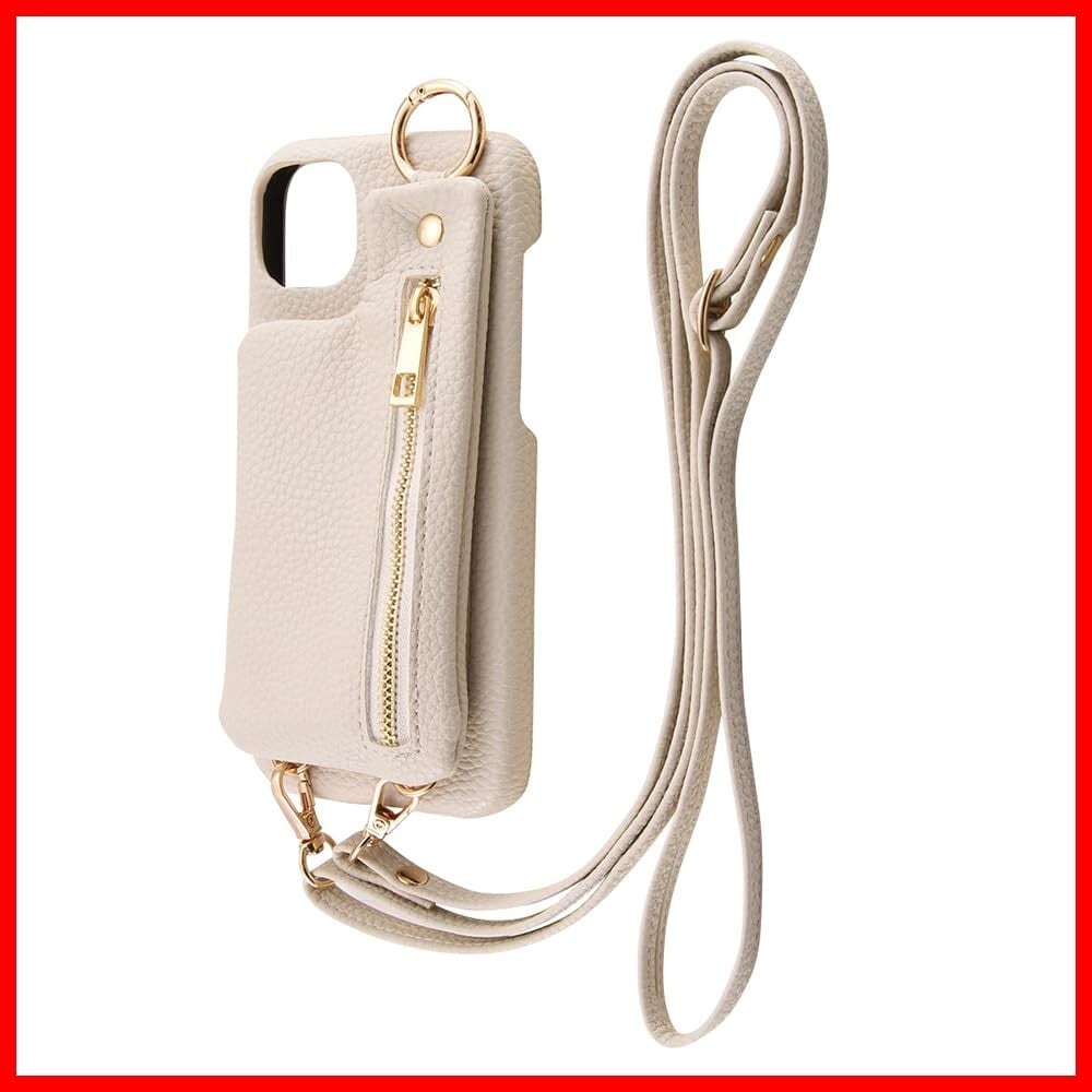 iPhone 15 Plus ケース オープンレザーケース ショルダーストラップ ポーチ付き m1n1 アイボリー
