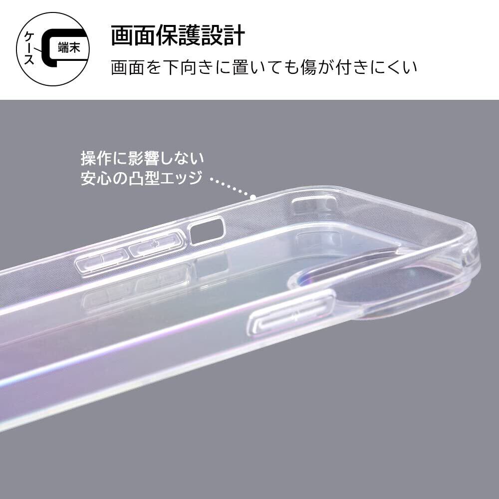 オーロラ、レインボーとも例えられる見る角度によって色目、表情を変える、強く美しいガラス素材を背面に採用した耐久性、透明度に優れたクリアケース。