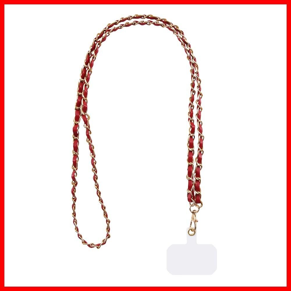 スマホ ショルダー ストラップ スマートフォン/iPhone 全機種対応 レッド レザー x ゴールド スマートフォン スマホ ショルダー