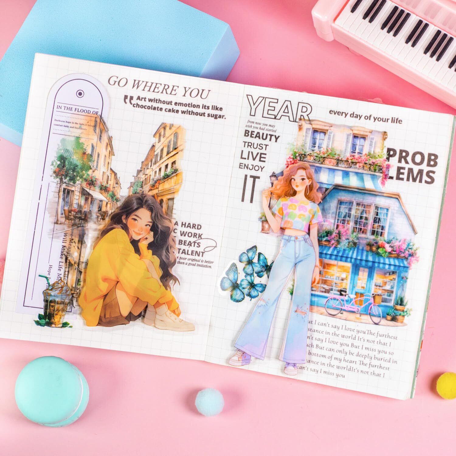 60枚 シール フレークシール コラージュ 素材 ペーパー 素材紙 レースユートピアステッカーレトロファッショナブルな女の子たち海外韓国 シール帳 ,メモ用紙ノート素材、日記装飾用品 (xingheqimeng)