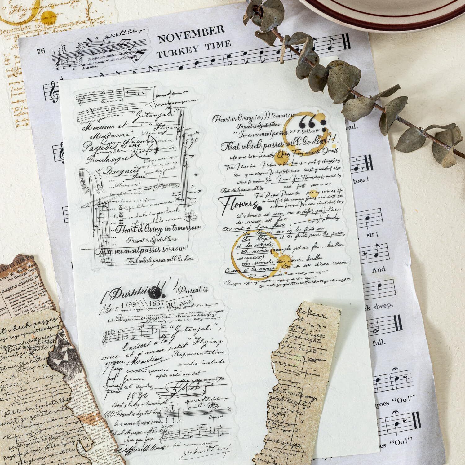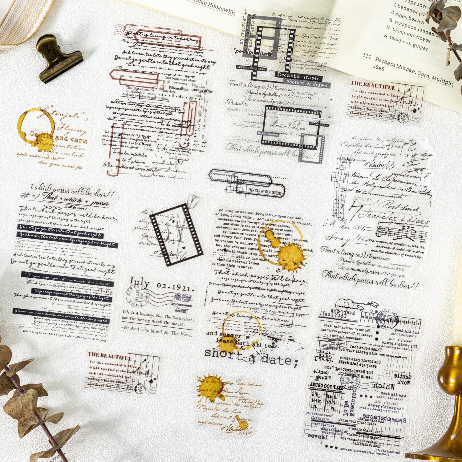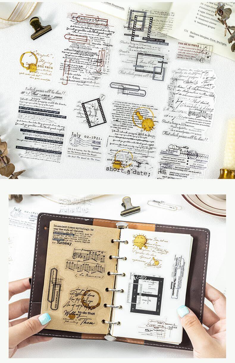 120枚 シール フレークシール コラージュ 素材 ペーパー 素材紙 レースユートピアステッカーレトロ英語タイトル 海外韓国 シール帳 ,メモ用紙ノート素材、日記装飾用品 (suipiancanzhang)