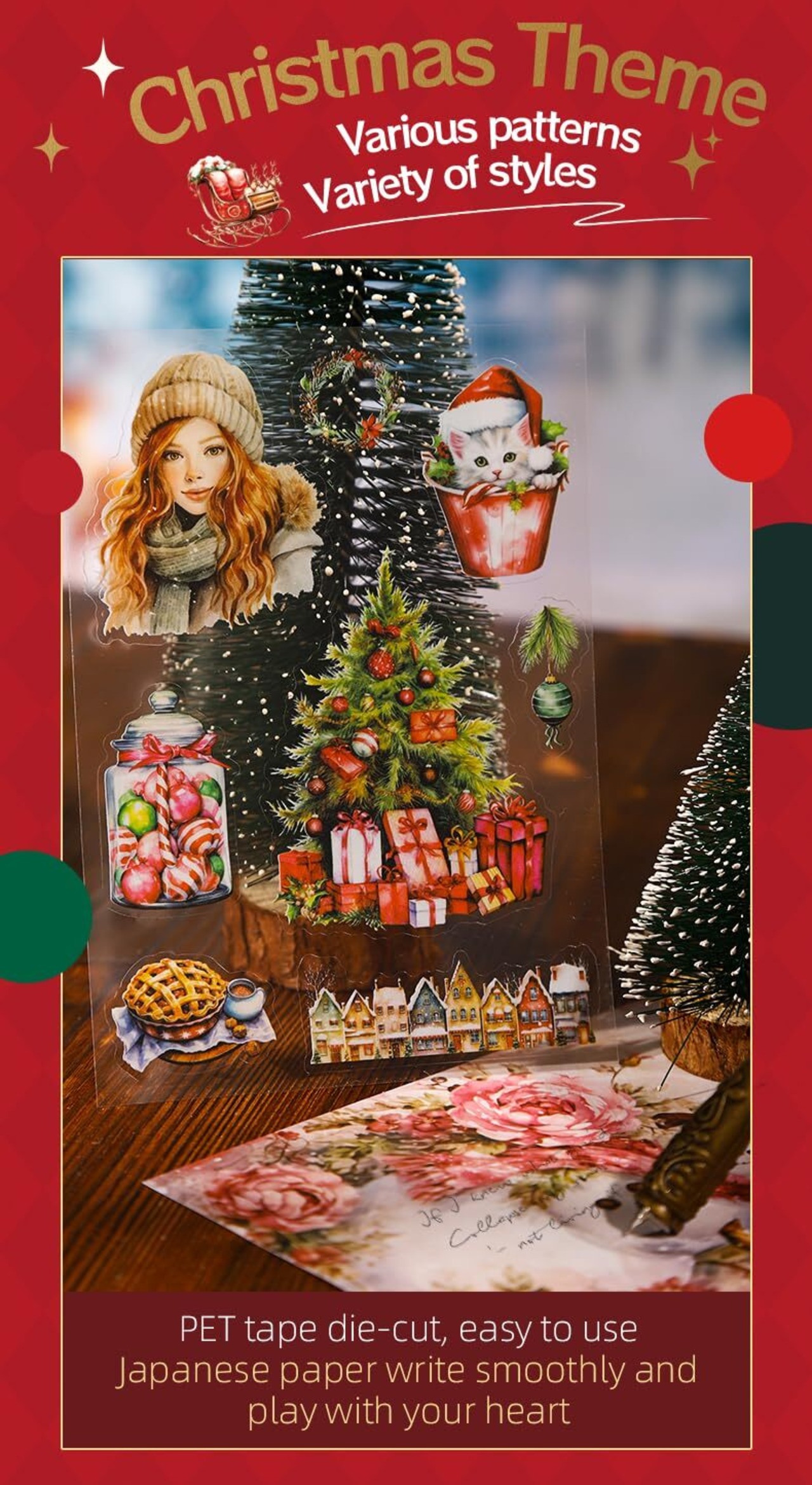 20枚 シール フレークシール ブックコラージュ 素材 ペーパー 素材紙 レースユートピアステッカーレトロクリスマス・アポイントメントのテーマ 海外韓国 シール帳 ,メモ用紙ノート素材、日記装飾用品 (fencaipaidui)