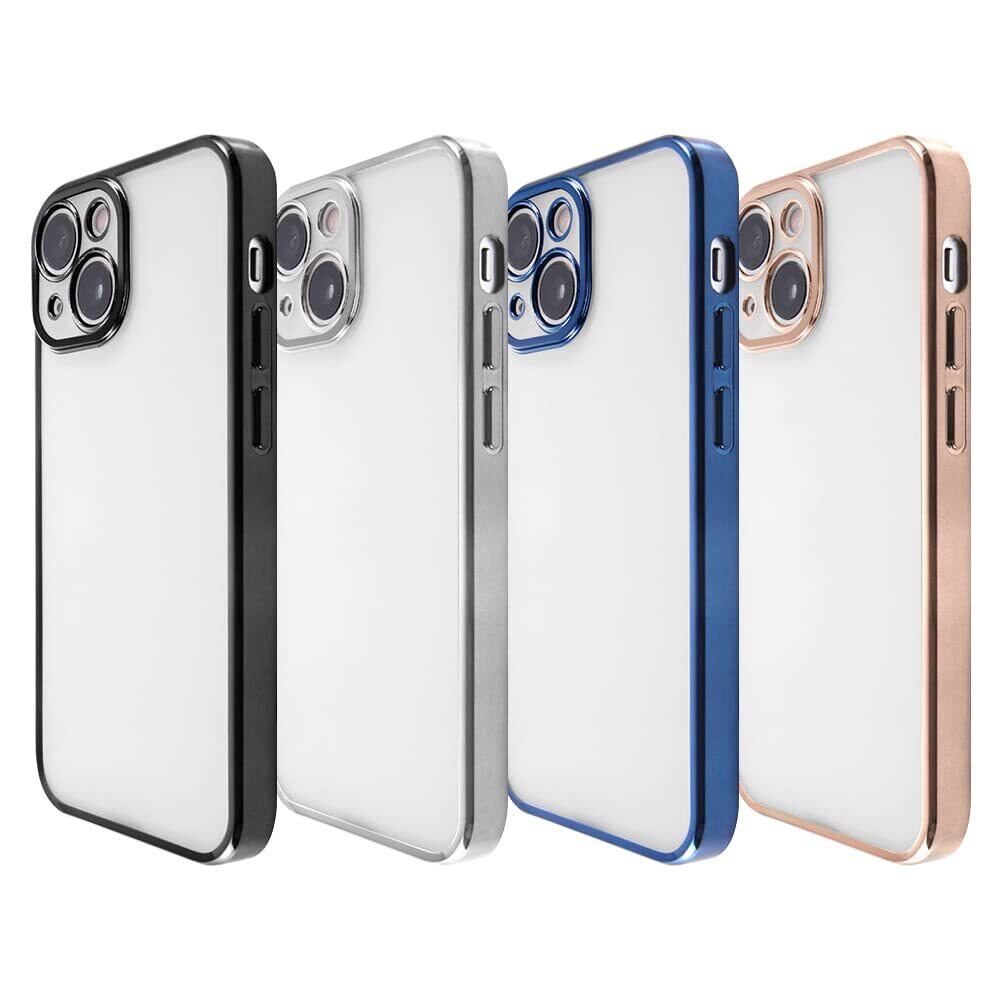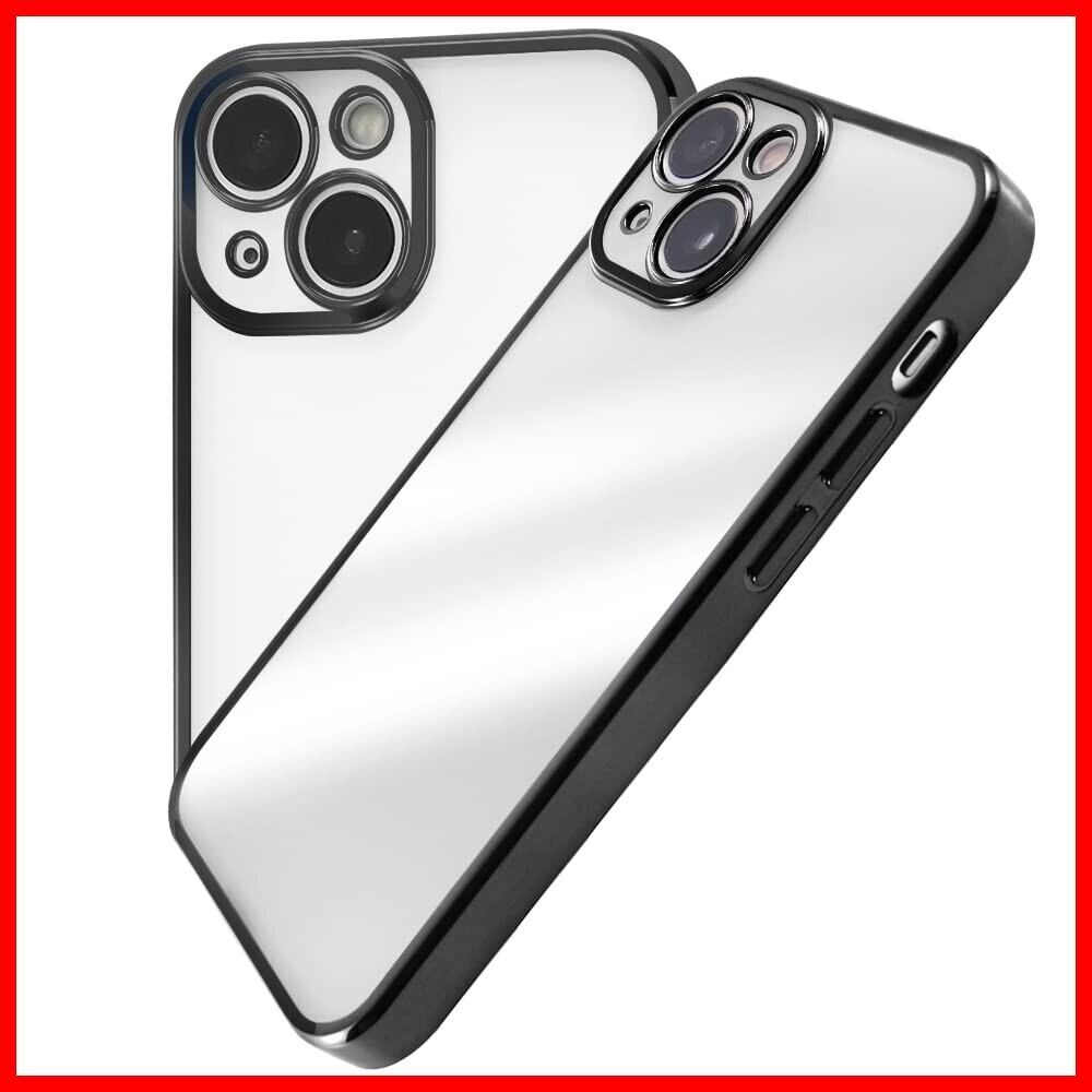 【限定】 iPhone13mini クリア ケース カメラ レンズ 周り 保護 耐衝撃 落下防止 ストラップホール付き メタリック バンパー ブラック
