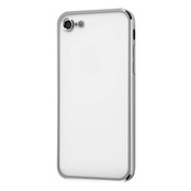 【限定】 iPhone SE3 SE2 クリア ケース カメラ レンズ 周り 保護 耐衝撃 落下防止 ストラップホール付き メタリック バンパー シルバー