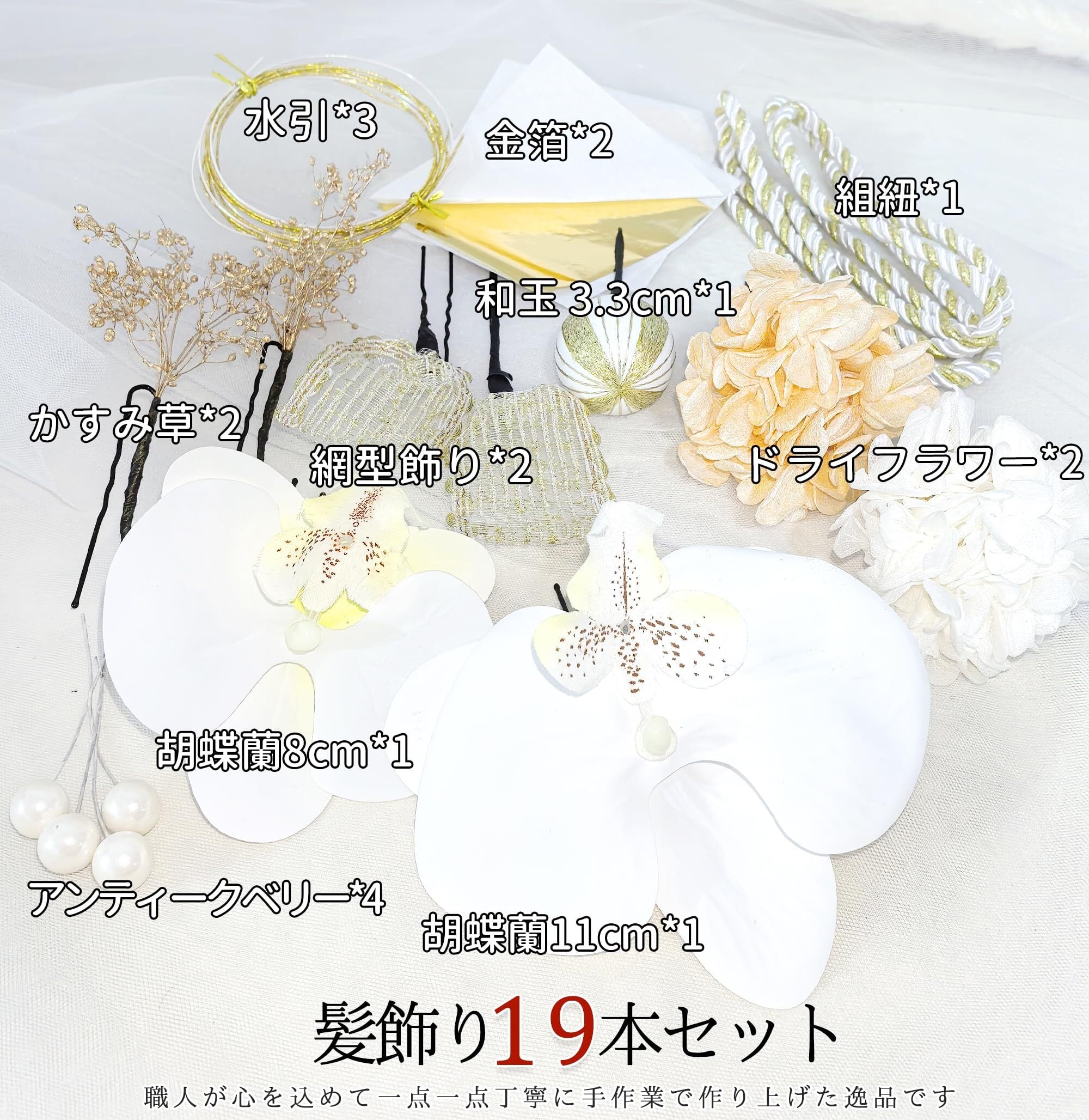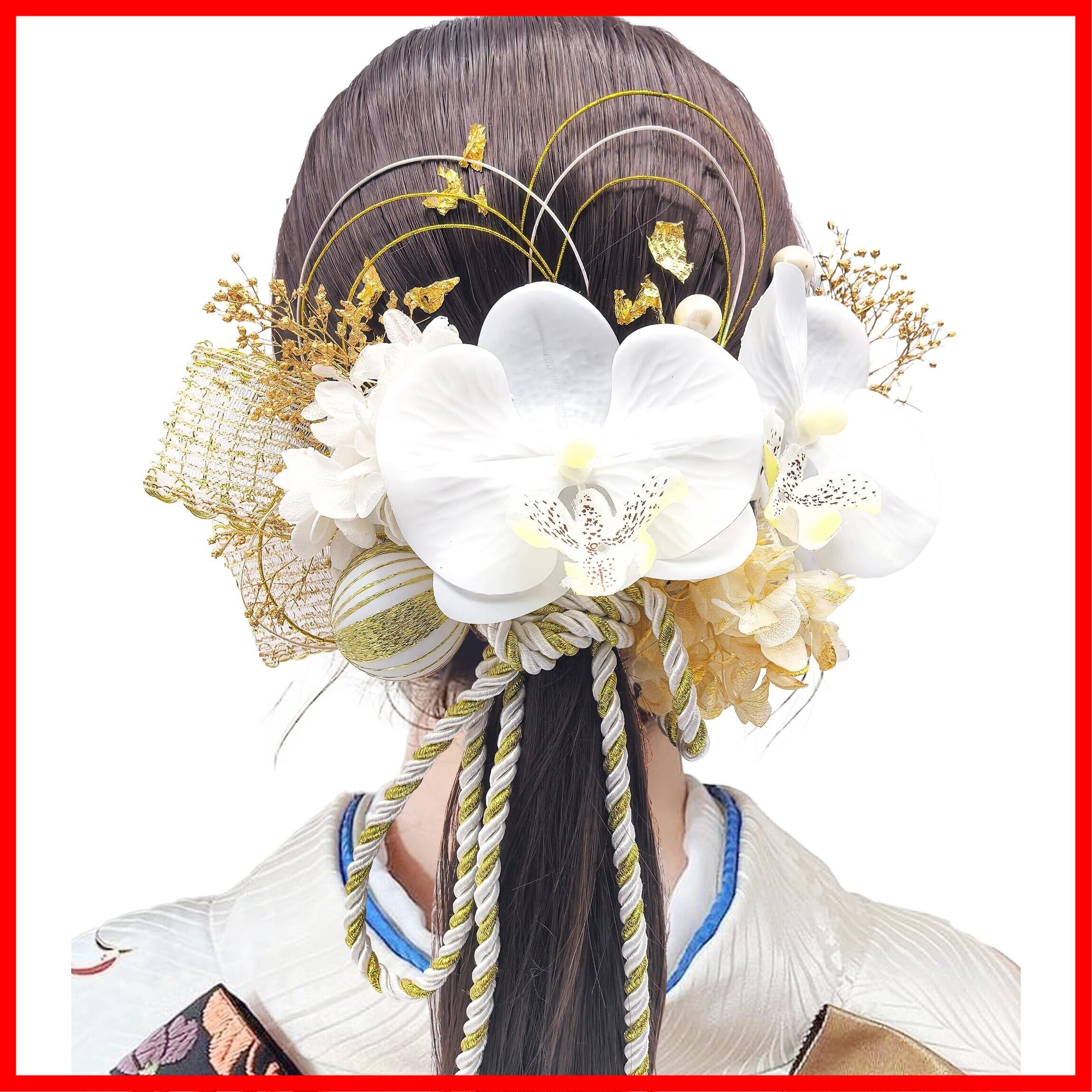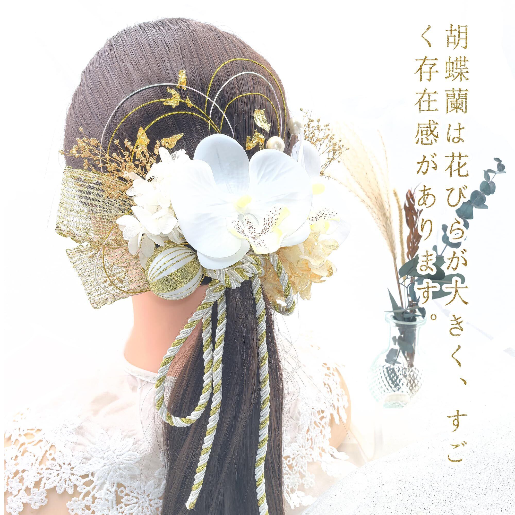 成人式 髪飾り 胡蝶蘭 ドライフラワー ダリア コチョウラン あじさい 和玉 白 ホワイト 水引 七五三 浴衣 袴 着物 飾り 振袖 和装 卒業式 結婚式 ウェディング 花 かわいい 手作り 専用ケース付き