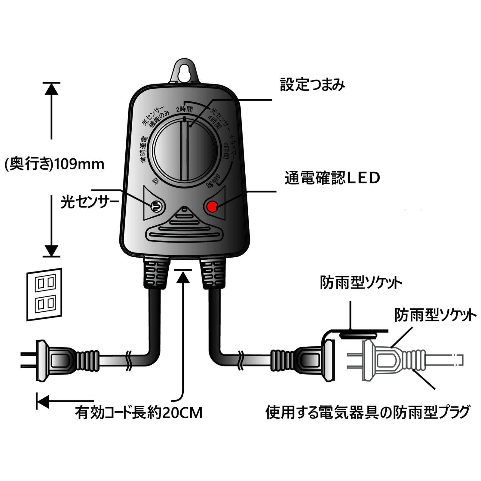 ●光センサー:光を感知して自動的にON/OFFすることができます。ヒーター使用器具 1,500W以下