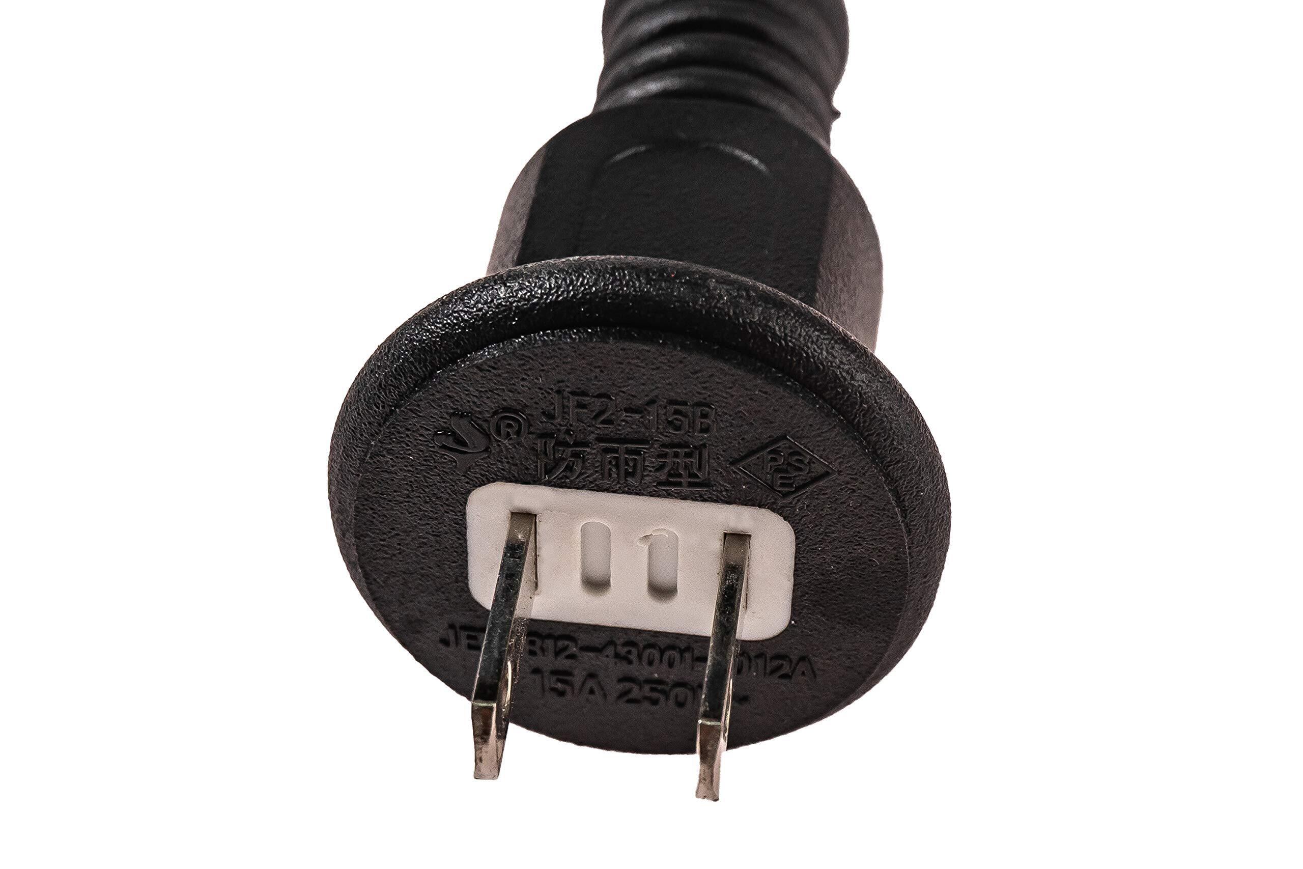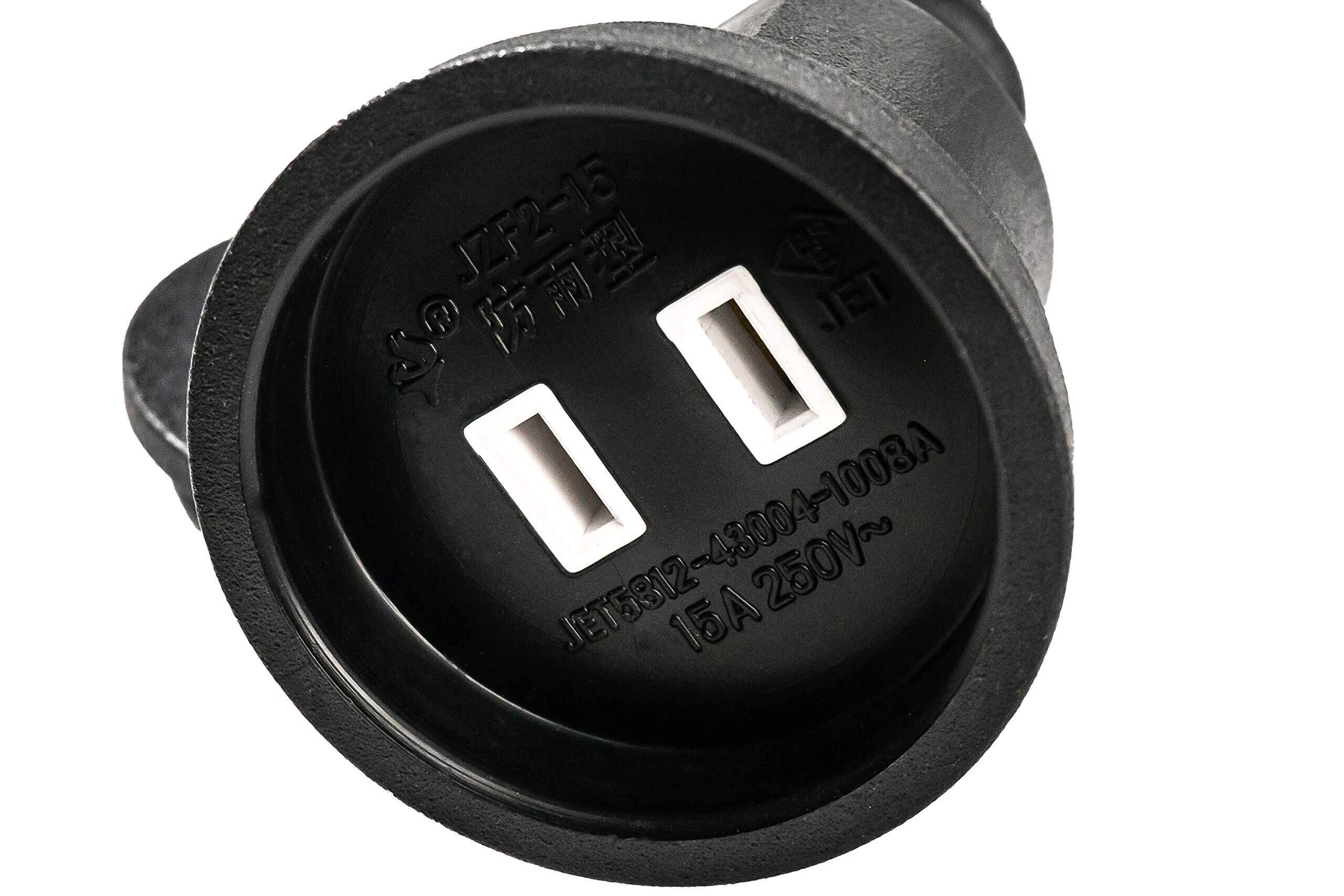 ●防雨型:丸い形防水プラグ、防雨型ケーブルを採用、屋外で利用可能。コンセント側に防雨型キャップ付き。