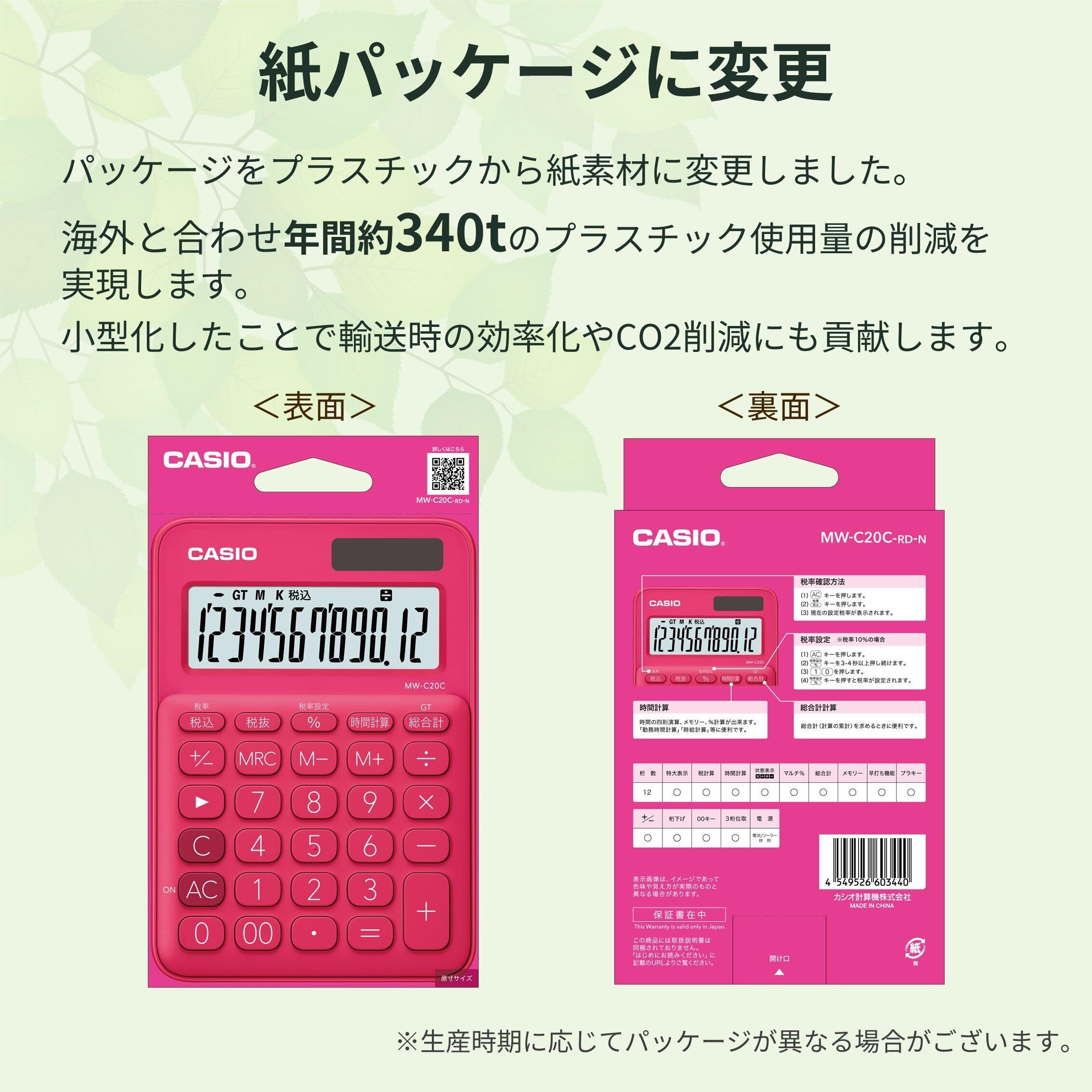 カシオ カラフル電卓 ビビッドピンク 12桁 ミニジャストタイプ MW-C20C-RD-N