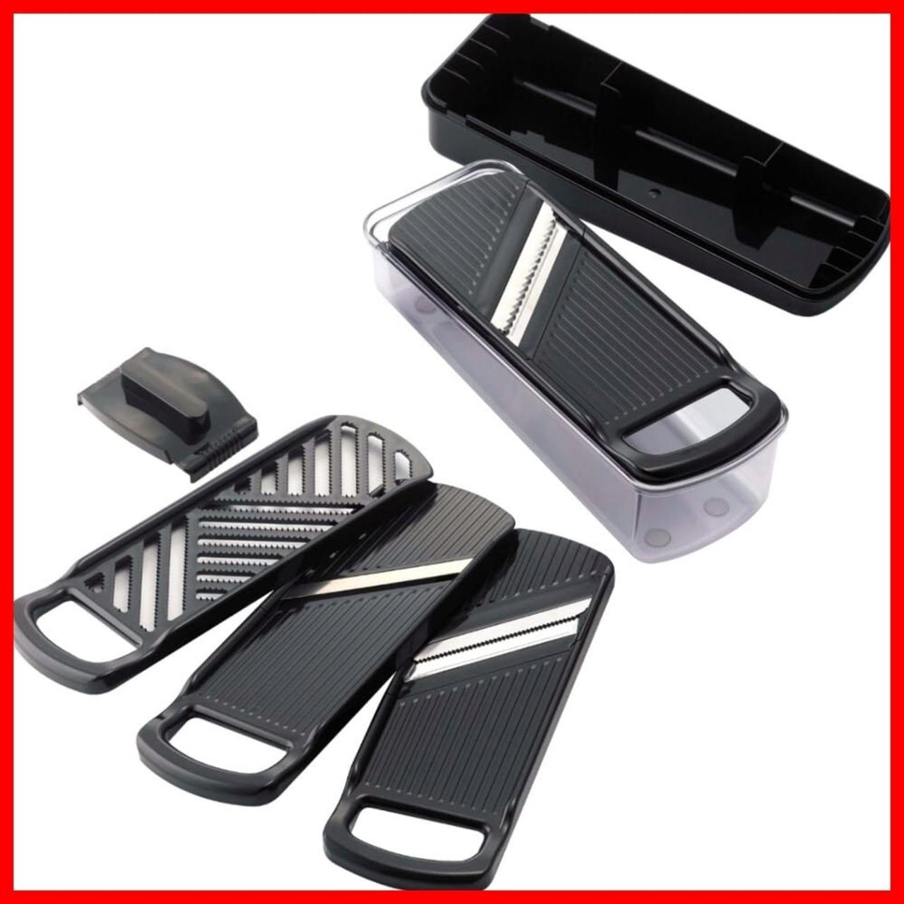 下村企販 [スゴ切れ] 4種の下ごしらえができる スライサーセット 【日本製】 時短調理 コンパクト収納 スライス/千切り/ツマ切り/おろし 安全ホルダー付き 専用ケース 野菜調理器 下ごしらえ ブラック 燕三条 43881 | hananoki