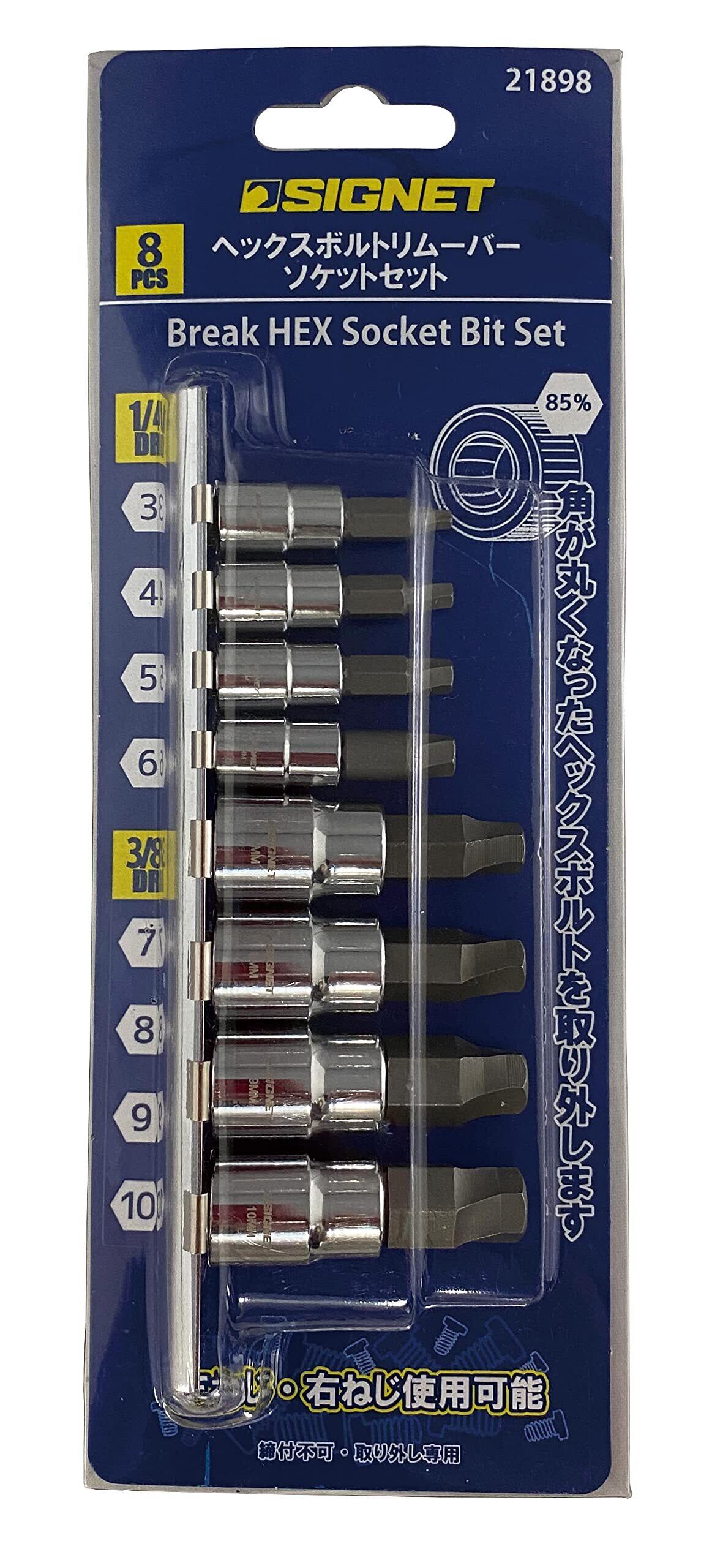SIGNET(シグネット) 角が丸くなったヘクスボルトの取り外しに 1/4・3/8DR 各4個入 ヘックスボトルリムーバーソケットセット 21898 黒